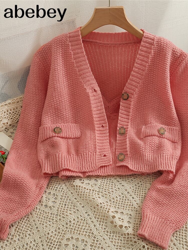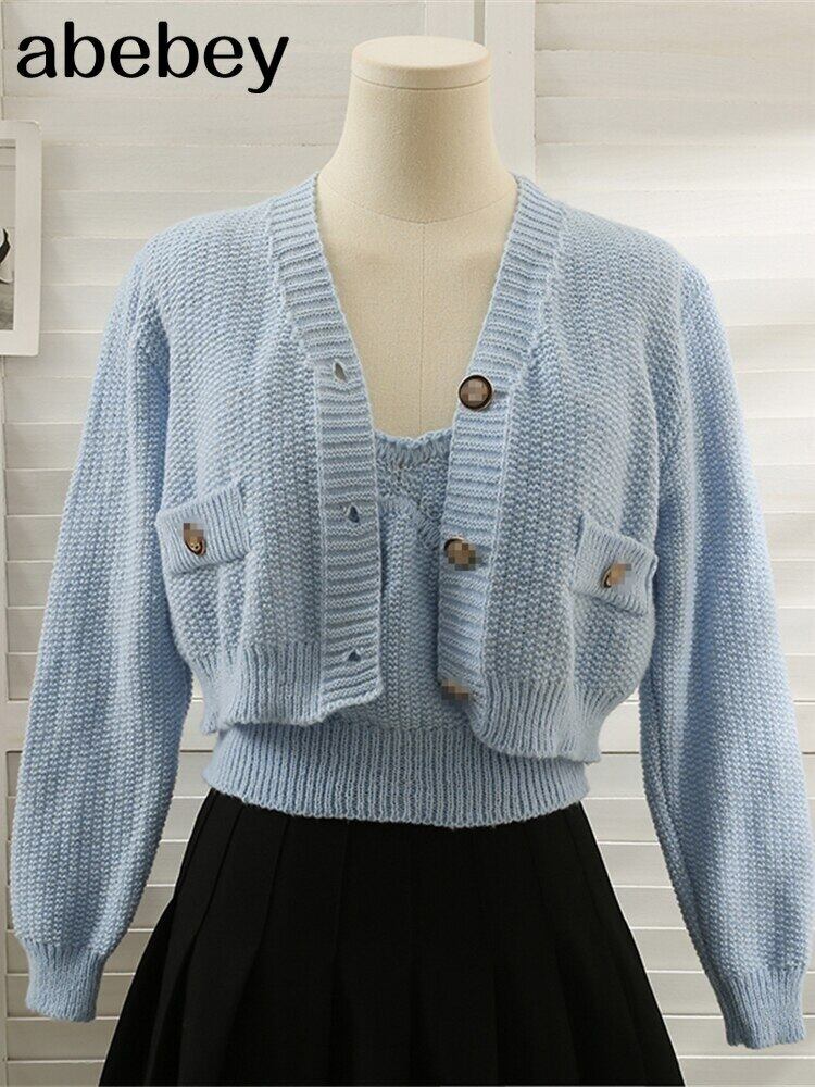 2022 秋の女性のカーディガンニットセーター 2 点セットカーディガンとタンクトップストリートセクシーな女性のセーター オータム 秋物 Abe17200681342