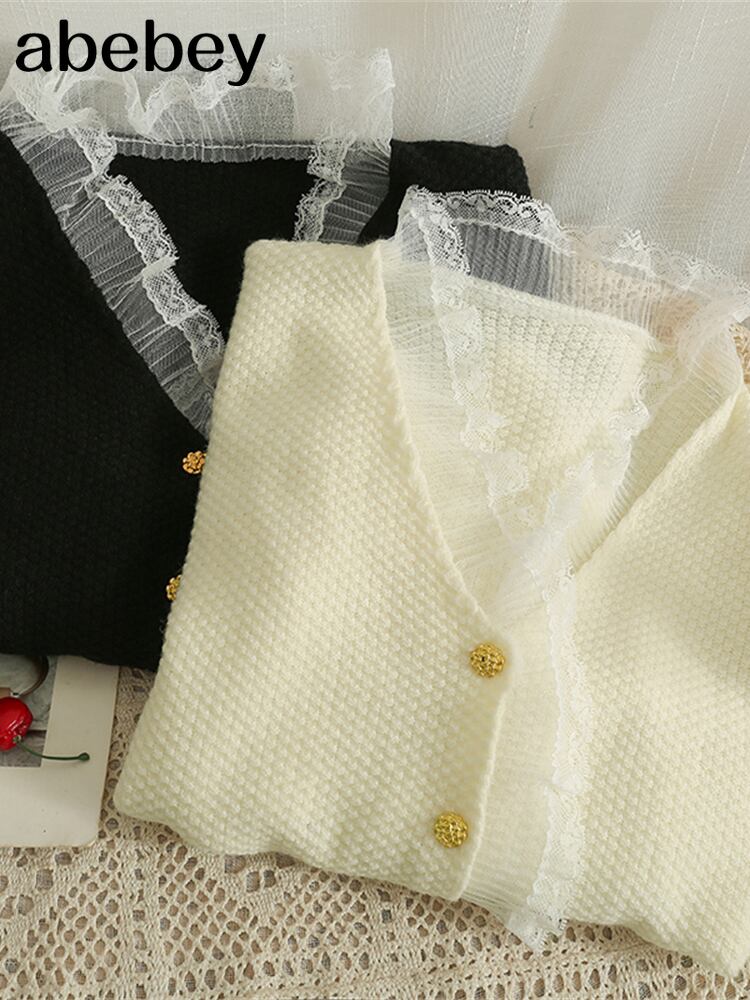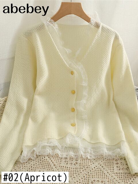 2022 シックな V ネック ボタン ショート カーディガン 春秋 レディース セーター ポケット ニット スプリング 春物 Vネック Abe15903815273
