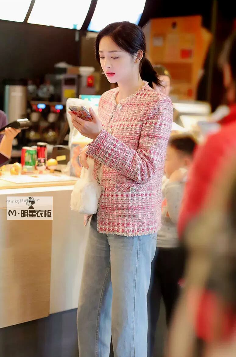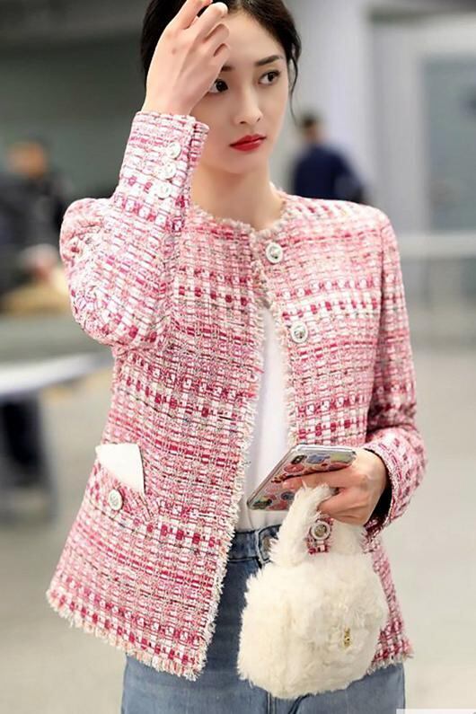 秋冬コート女性 2022 スリム長袖チェック柄コートマルテルツイードコートピンク ロング オータム 秋物 ウィンター 冬物 Rhc74402834748