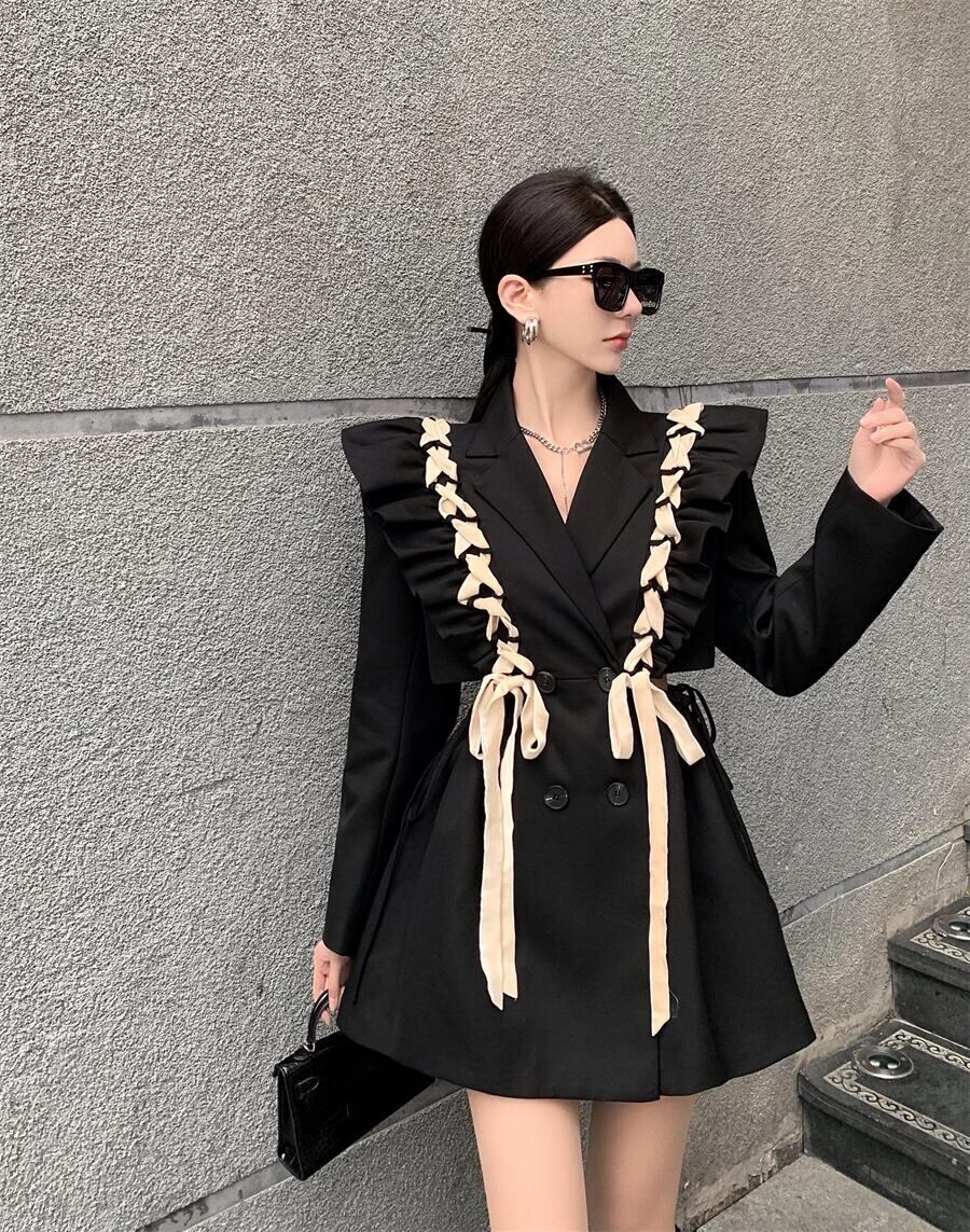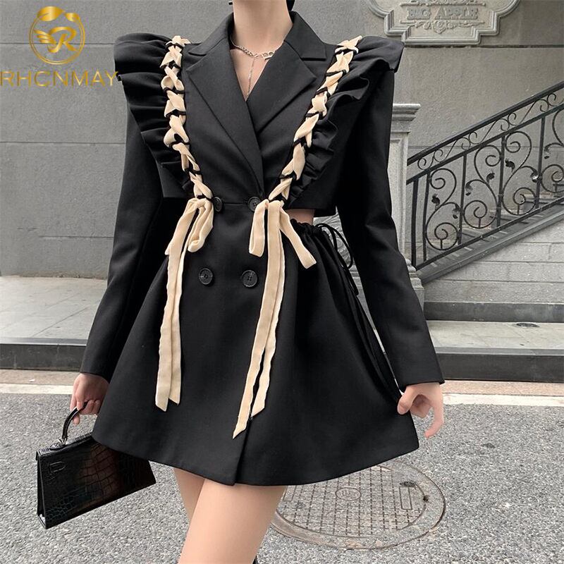 包帯弓フリル ドレス女性のセクシーな漏れウエスト ブラック ミニ ドレス ストリート スタイル リボン Rhc3390788807