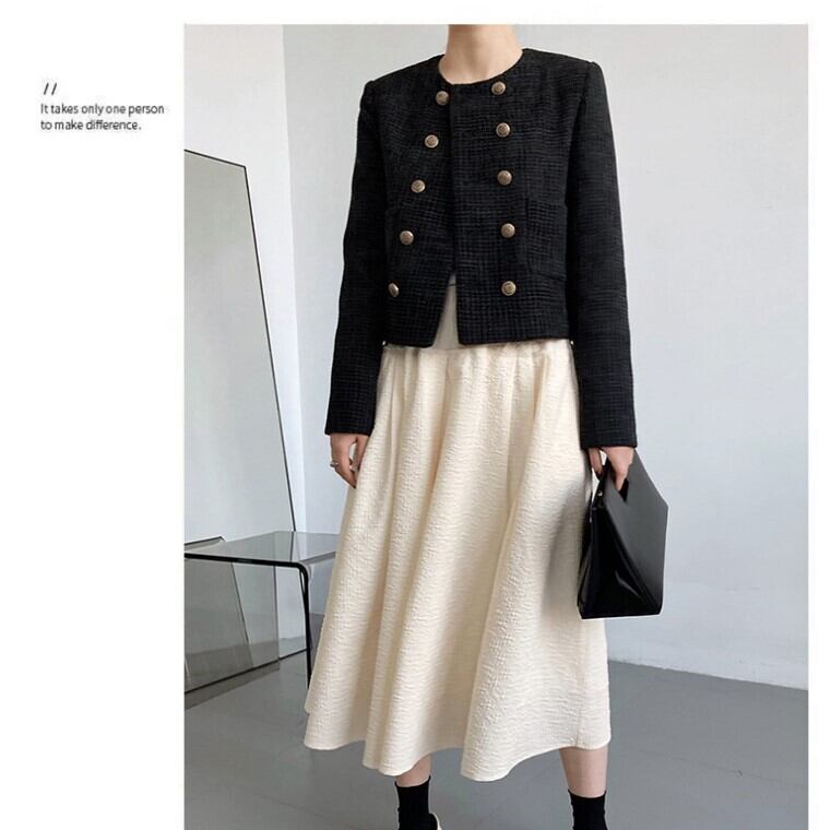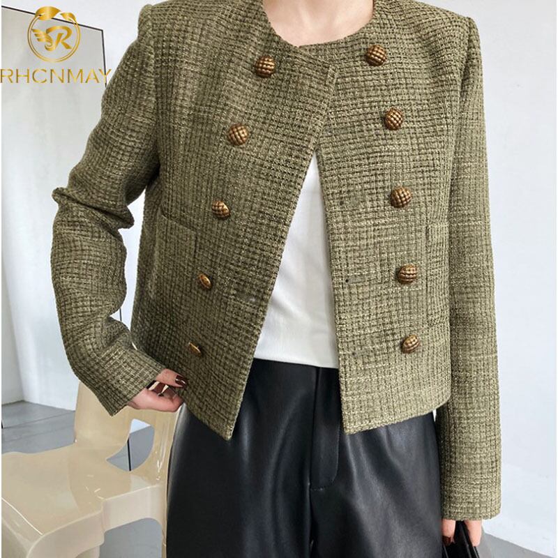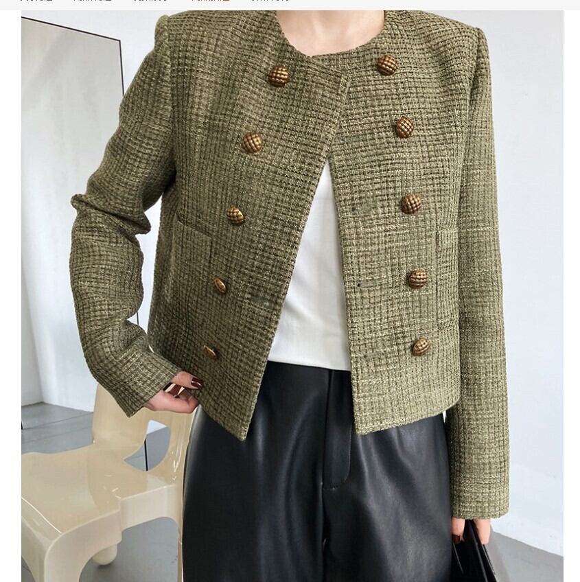 小さな香りツイードジャケットコート女性秋冬ダブルブレストコート生き抜くトップ オータム 秋物 ウィンター 冬物 Rhc30524445920