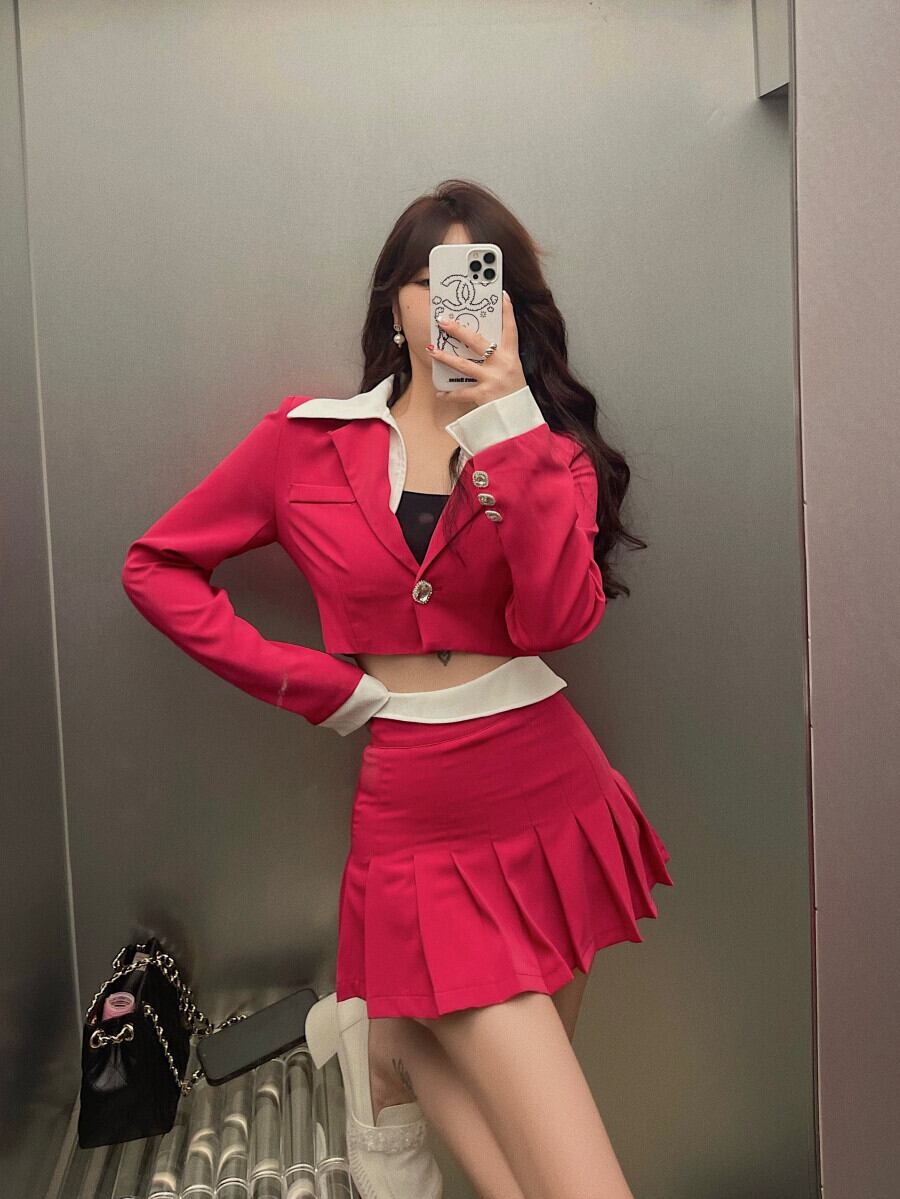 秋 2022 パッチワークダイヤモンドボタンツーピースセット女性のラペル長袖スーツジャケットセクシーなプリーツスカートの女性のスーツ ロング オータム 秋物 Rhc87334535363