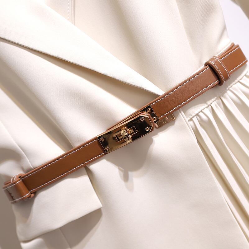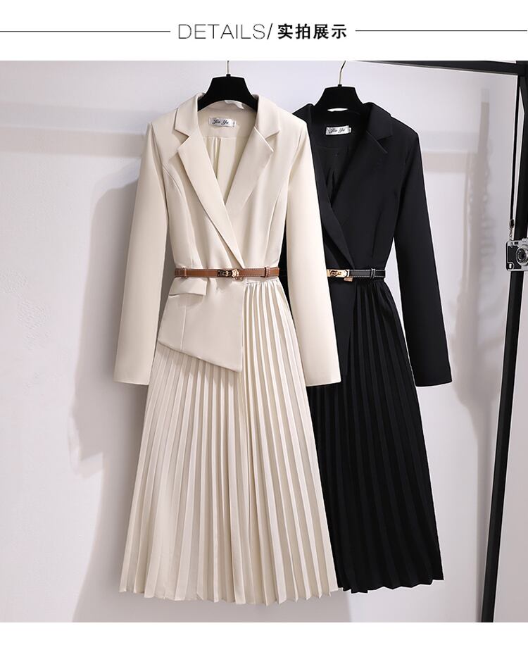 2022 ウエストノッチプリーツ不規則なベルトオフィス女性春冬ロングドレス スプリング 春物 ウィンター 冬物 ハーネス 会社 学校 通勤や通学にも Rhc62382897935