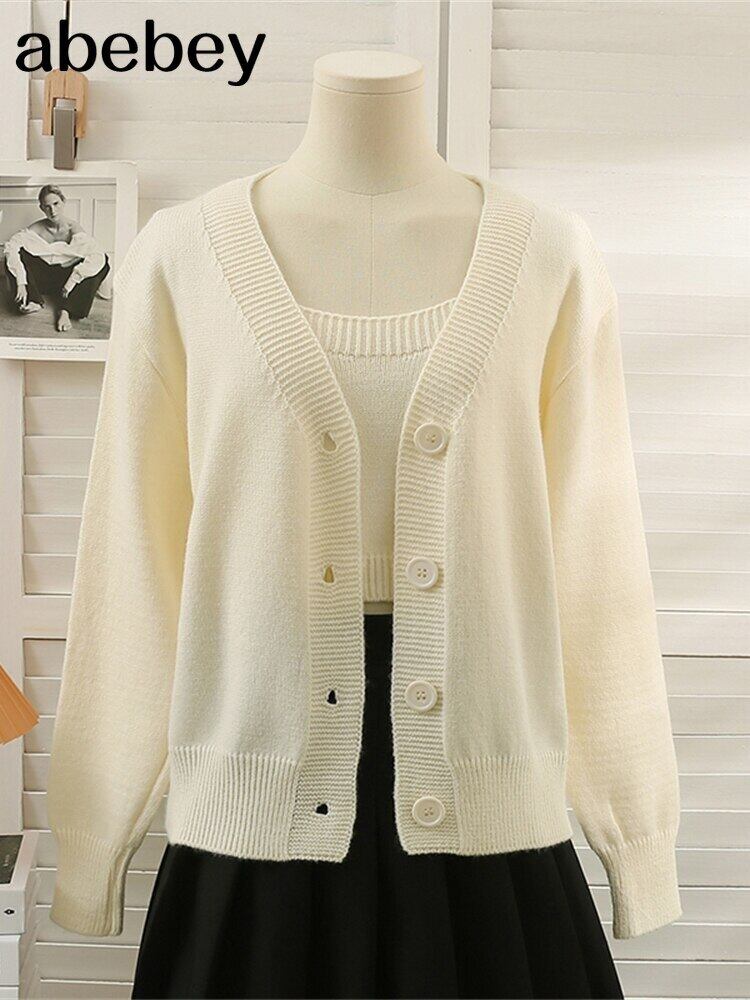 ツーピースショートレイヤードベストカーディガンと秋ルーズシングルブレストVネック長袖ニットカーディガンレディース ロング レッド オータム 秋物 Abe22722295037