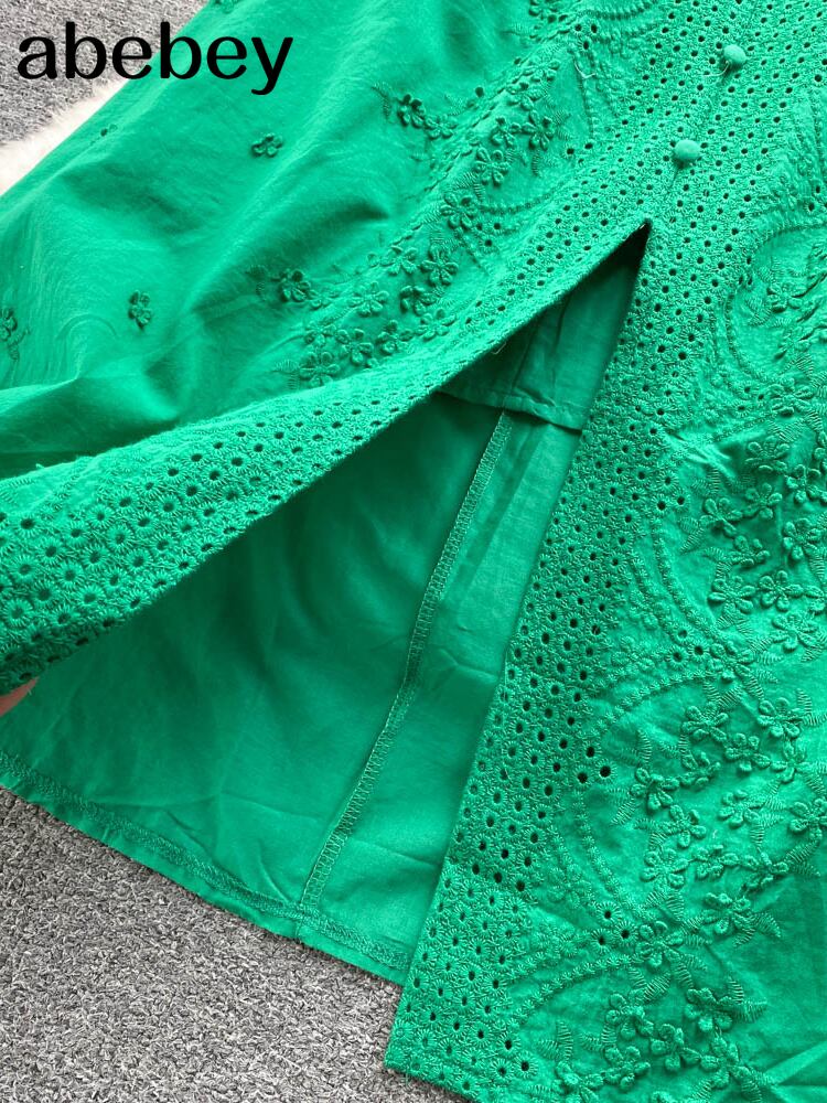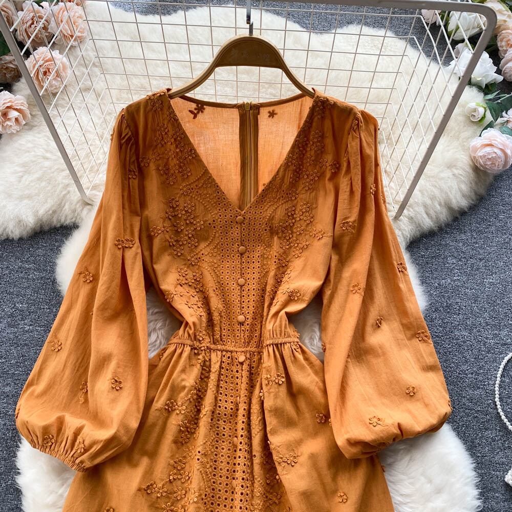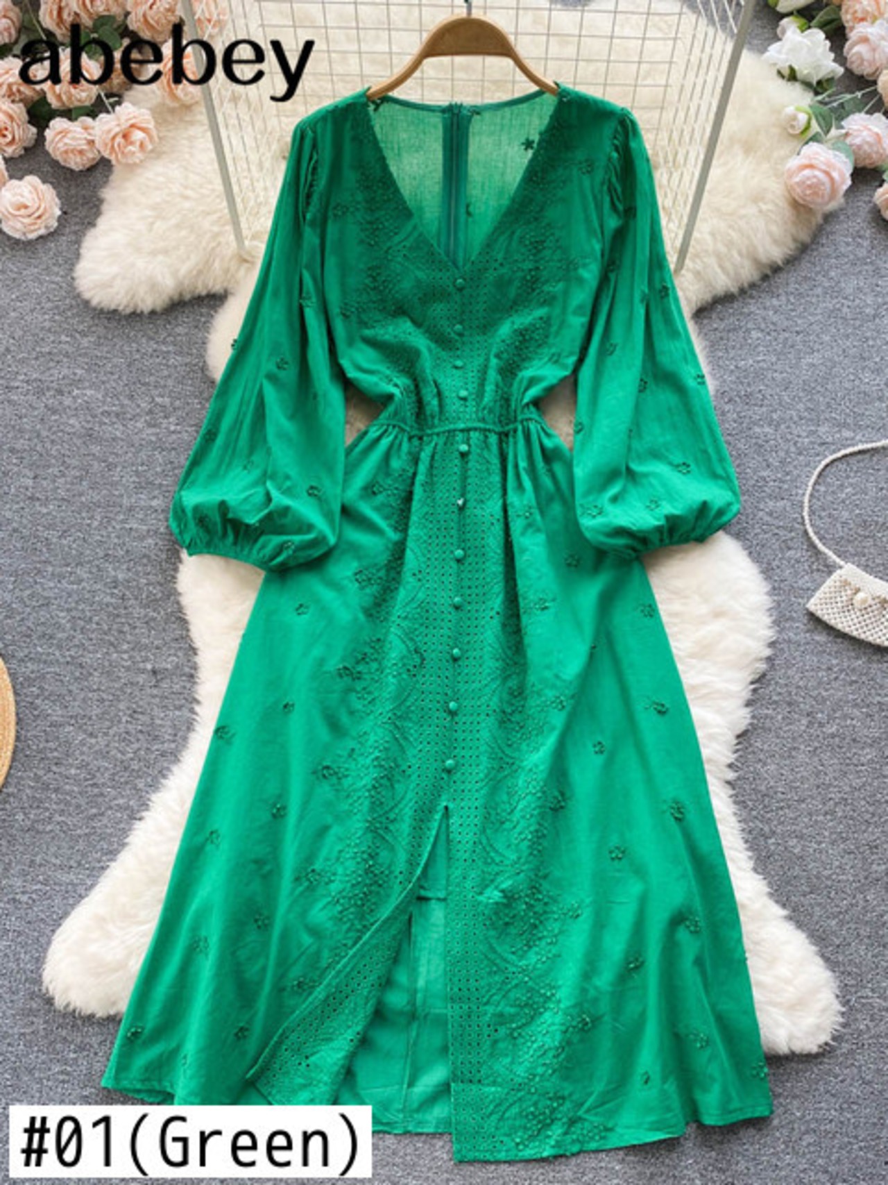 オレンジ/グリーン 2022 秋レース刺繍ドレス女性長袖ドレスパーティービーチマキシロングドレス オータム 秋物 Abe41197797969
