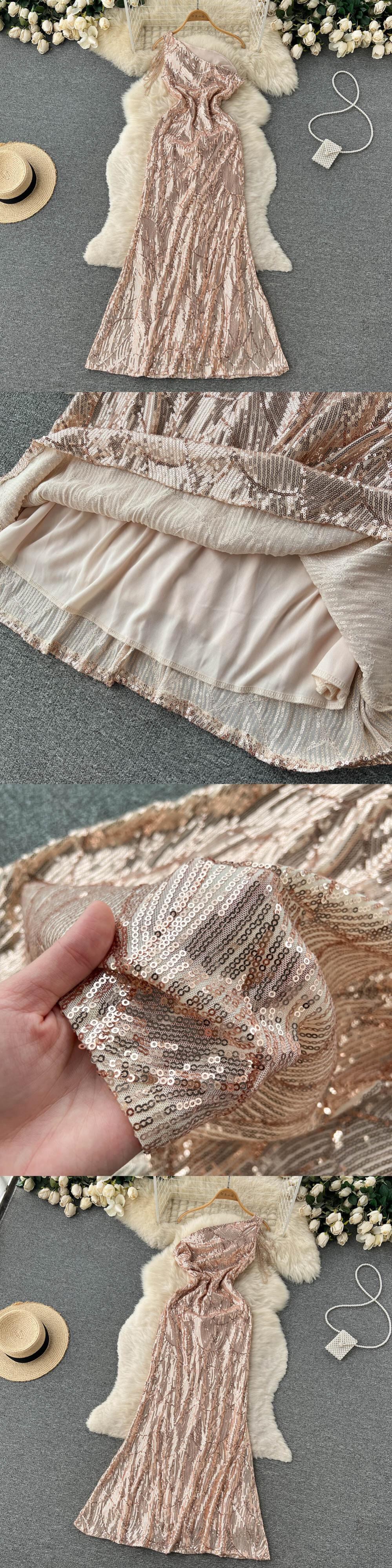 2022 女性スキュー襟ノースリーブパーティードレスマキシロングシンプルなソリッドタイトドレス部屋着ストリートスパンコール ソリッドカラー Abe578776180