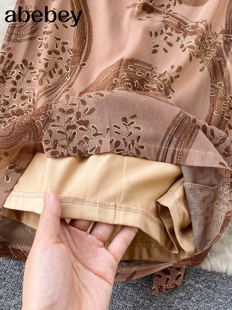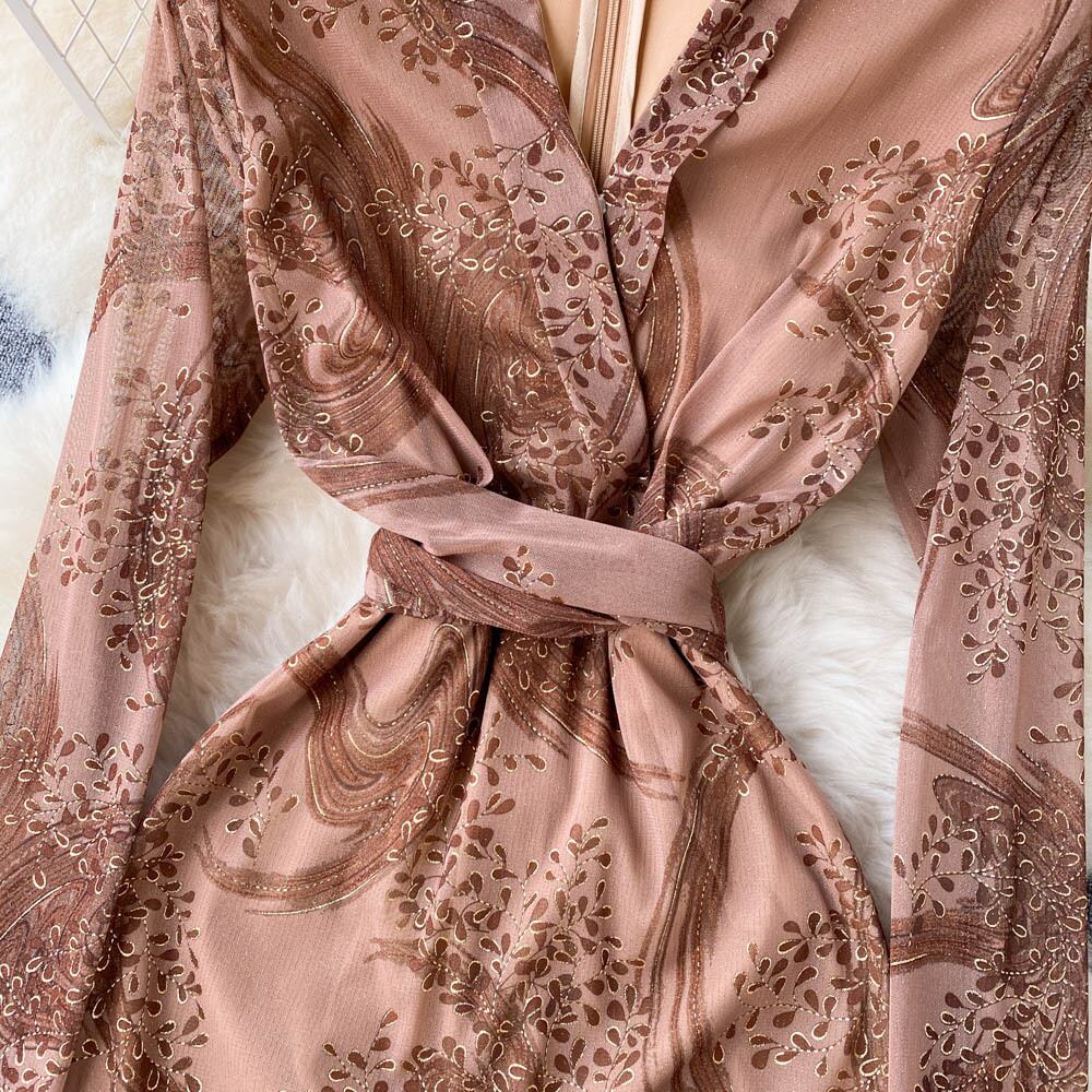 2022 メッシュスタイルの女性ドレス夏花サッシシックな優しいジッパー V ネック A ラインスプリットドレス サマー 夏物 花柄 Vネック Aライン Abe32474596030