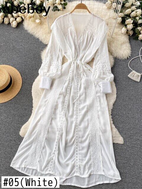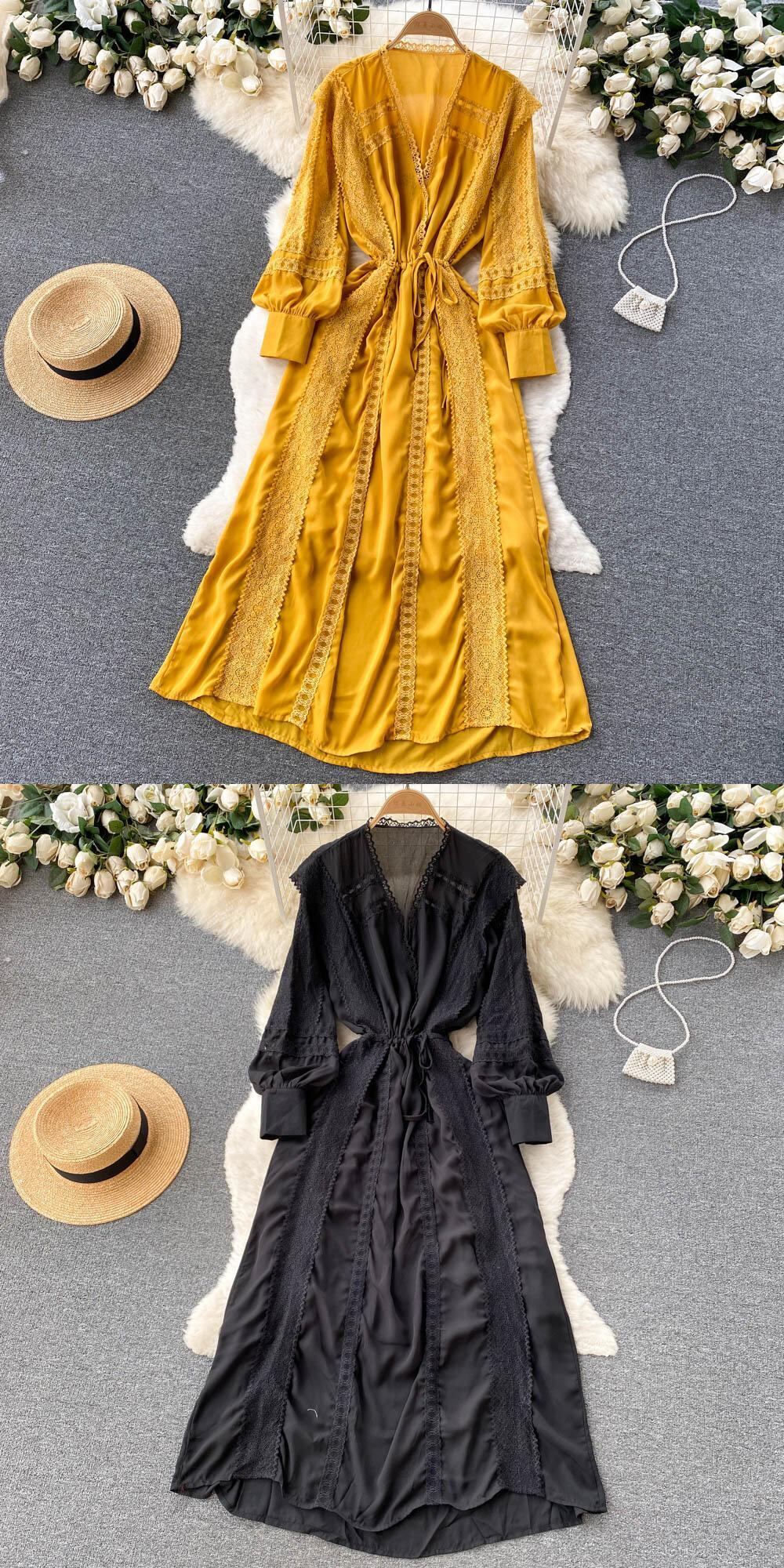 イエロー/ピンク/ホワイト夏の滑走路自由奔放に生きるマキシ ドレス女性の長袖弾性ウエスト ホリデー ロング ドレス エラスティック 伸縮 サマー 夏物 Abe38157639078