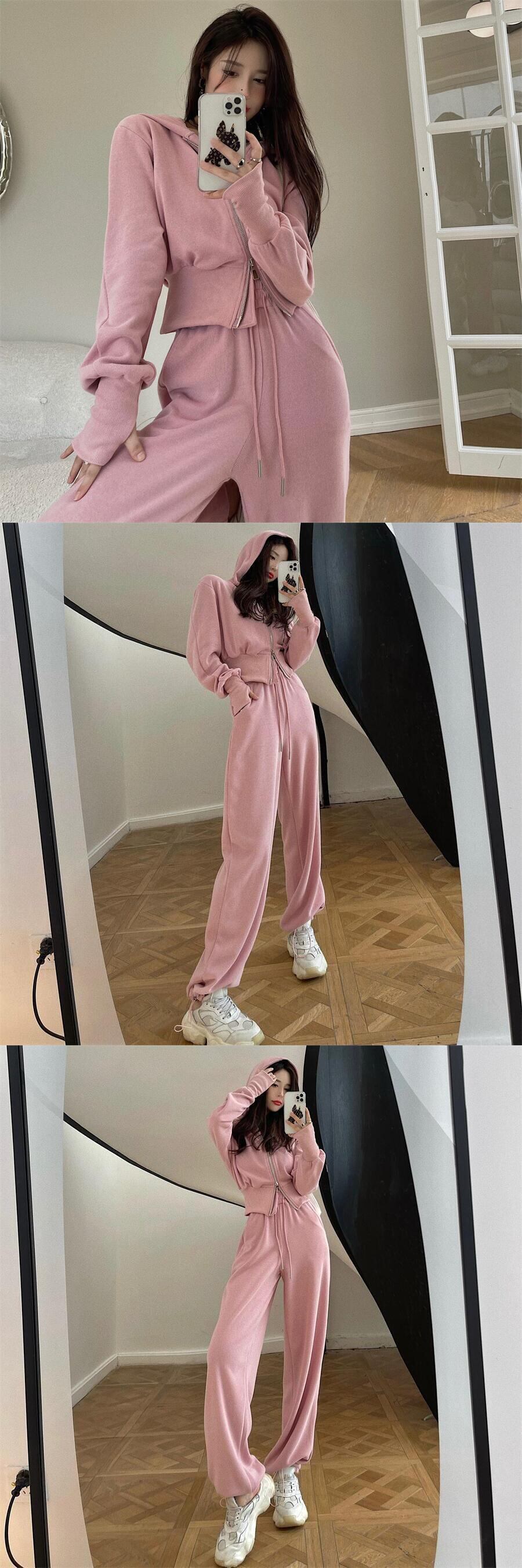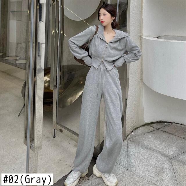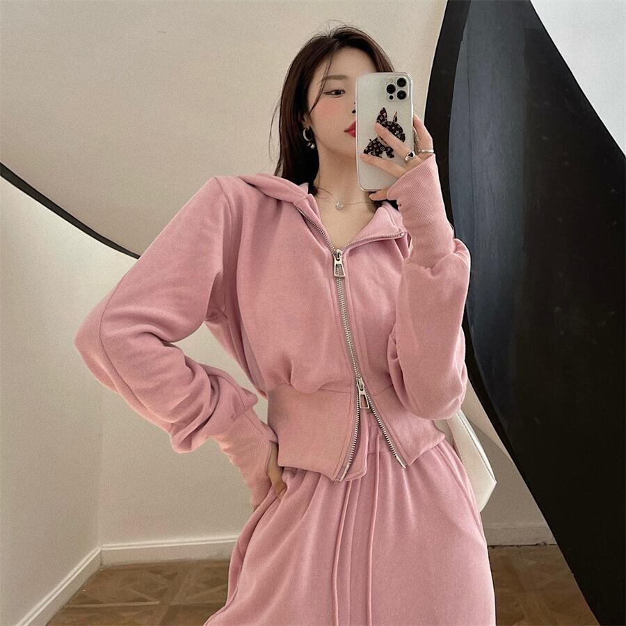 女性ツーピースセットジッパーフルスリーブジャケットフード付き + レッグパンツルーズズボンスーツ秋のスーツスポーツストリート オータム 秋物 Rhc58231779289