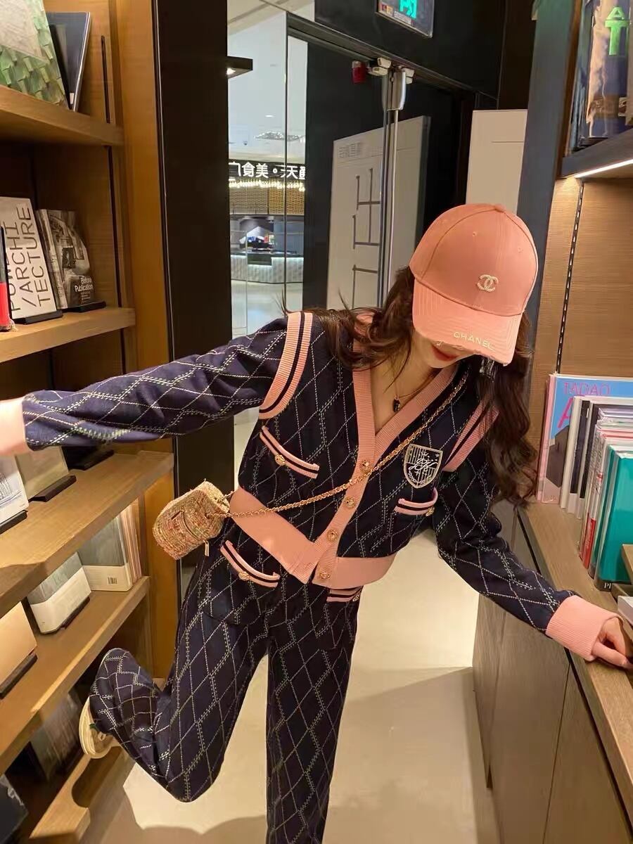 秋冬スウィートパッチワークチェック柄ニットツーピースセット女性 V ネックパールボタンセーターカーディガン + ワイドレッグパンツスーツ 大人ガーリー キュート カジュアル オータム 秋物 ウィンター 冬物 Vネック ワイドパンツ 真珠 Rhc80833199168