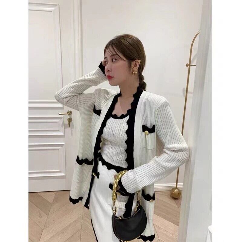 甘いニットカーディガン + キャミソール + スカート 3 個セット女の子ロングセーターコート + ベスト + ミニスカートスーツ女性衣装 大人ガーリー スウィート キュート カジュアル Rhc89641412314