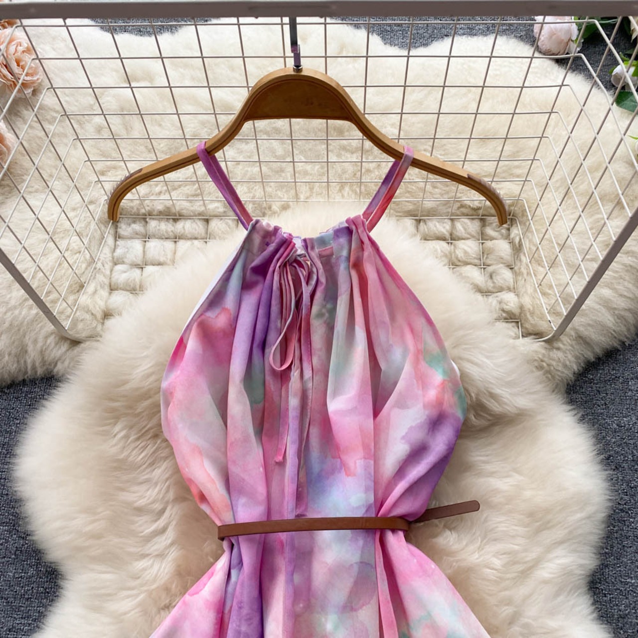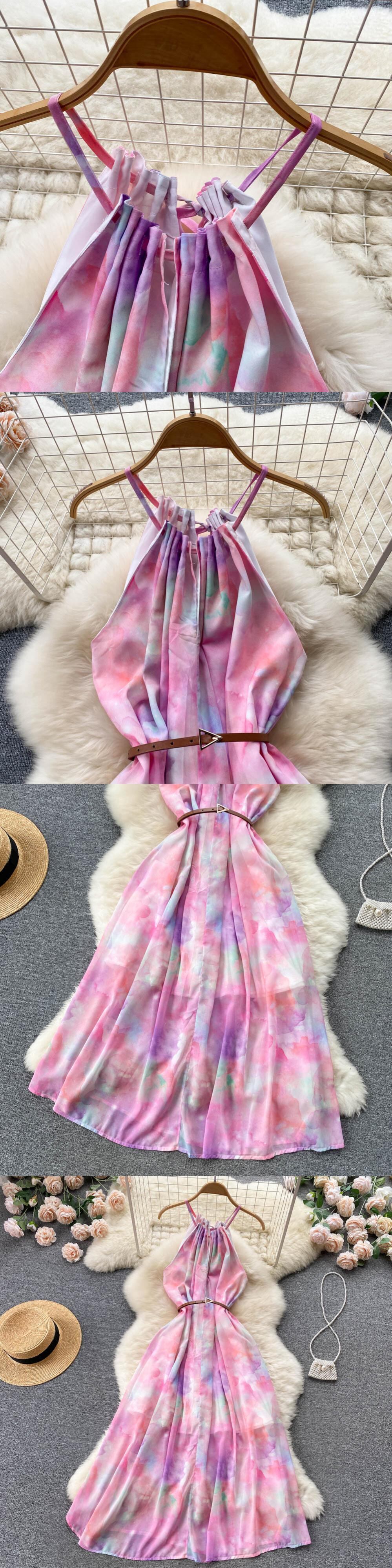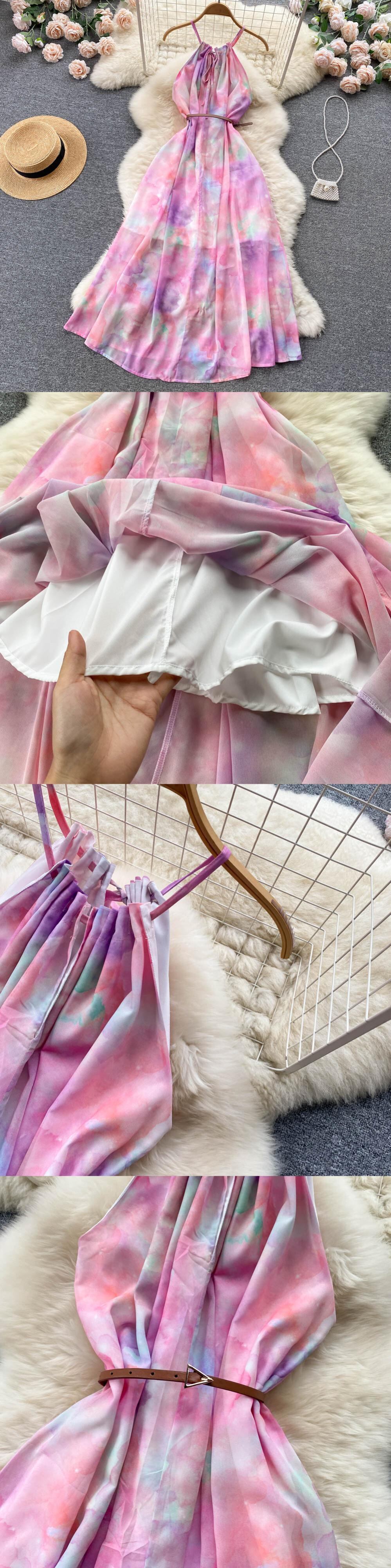 夏の女性の花スパゲッティストラップロングドレスボヘミアンバケーションビーチマキシローブピンク/ホワイト A ライン Vestidos サマー 夏物 花柄 Aライン Abe58485505446