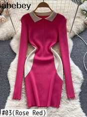 パットワーク女性ニットペンシルドレス長袖グリーン弾性スリムドレス秋冬セクシーなボディコン暖かいセータードレス ロング エラスティック 伸縮 オータム 秋物 ウィンター 冬物 Abe39338677585
