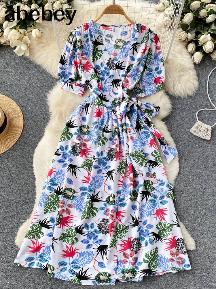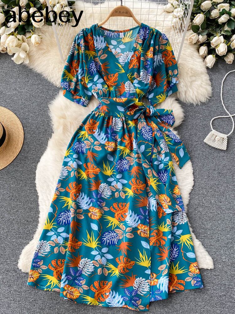 スリム 2022 花柄 V ネック包帯ドレス夏ミディロングパーティー女性ウエスト Vestido デ · フェスタドレス サマー 夏物 Vネック Abe20184345029