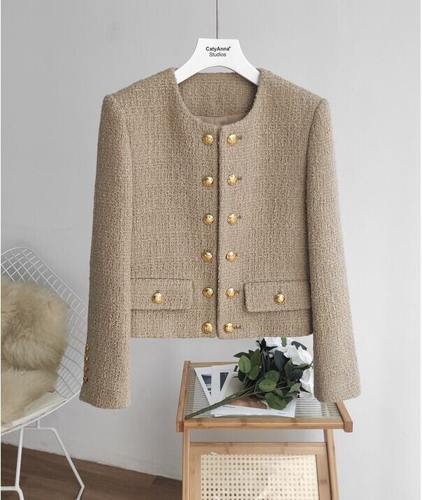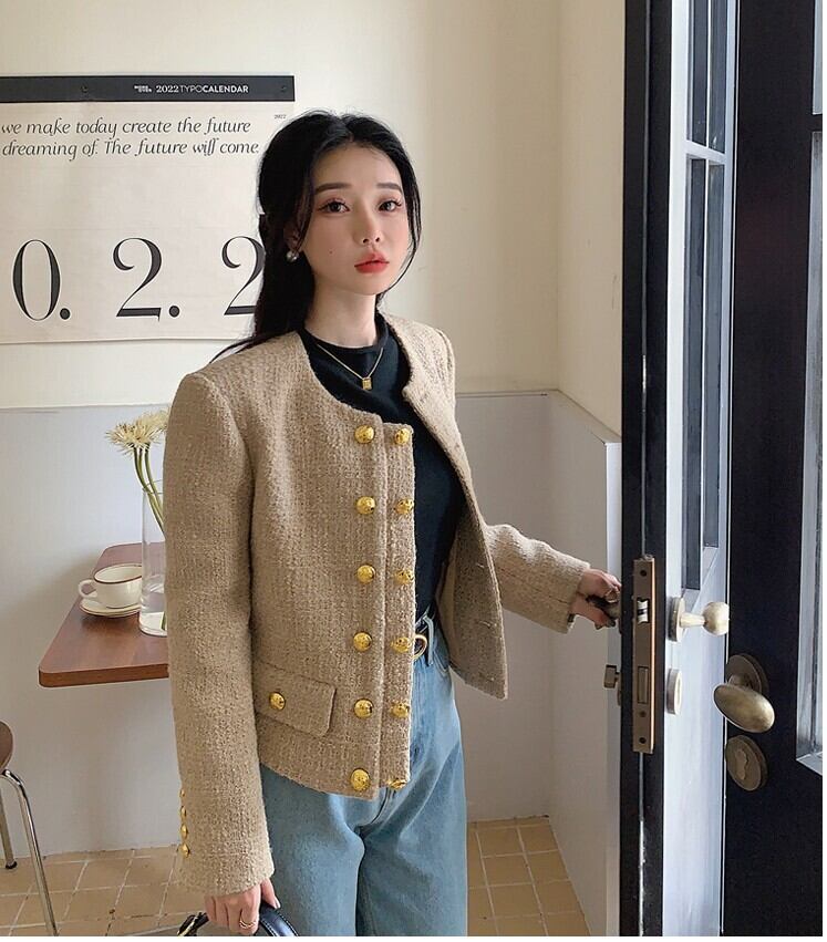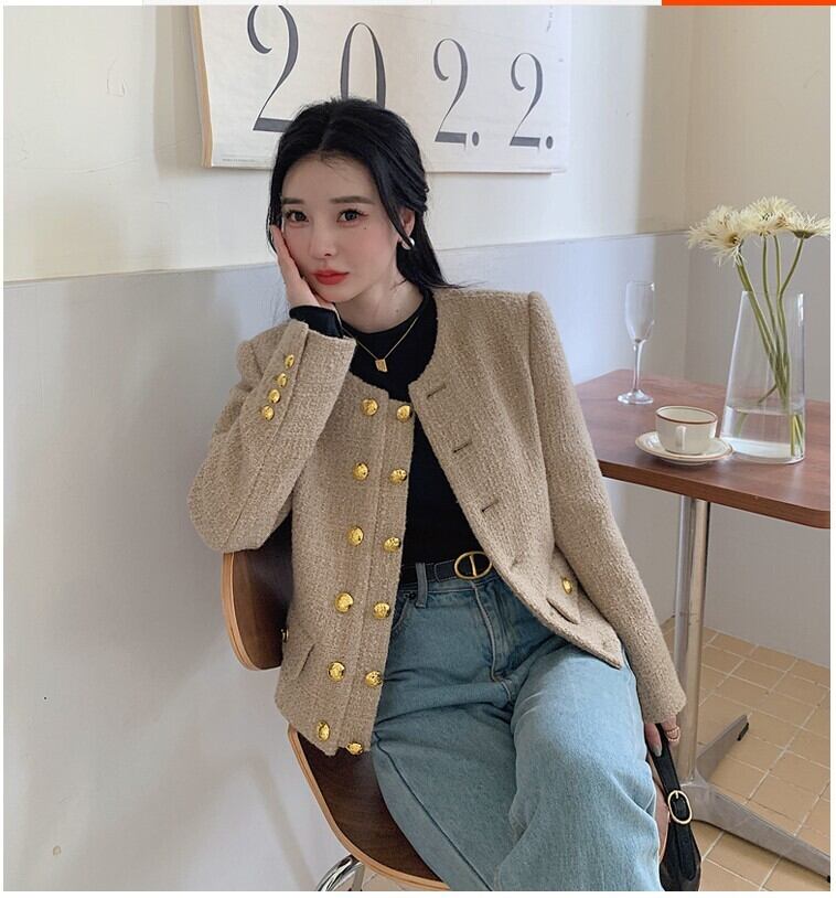 スモール フレグランス ジャケット レディース ショート コート 秋 フレンチ オールマッチ ウール ツイード コート ジャケット トップ オータム 秋物 Rhc13226436975