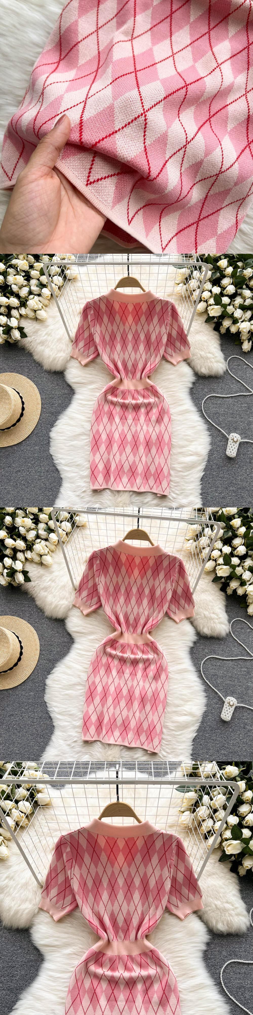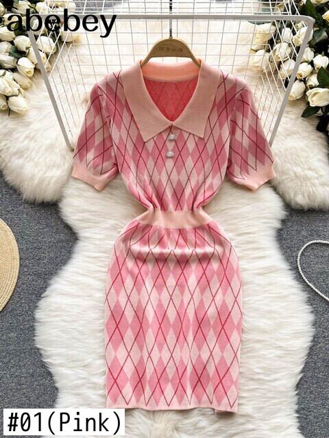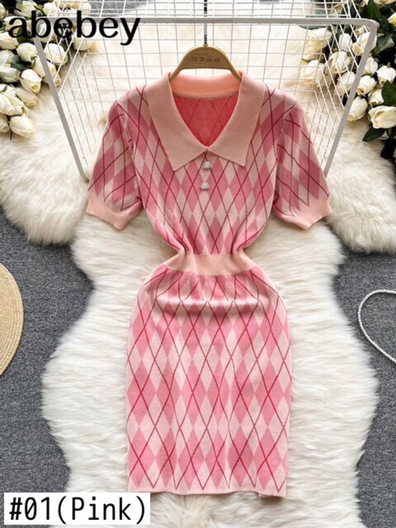 フランスのレースの格子縞の女性のドレス 2022 夏優しいレトロピーターペンネック A ラインミディドレス サマー 夏物 Aライン Abe52835714106