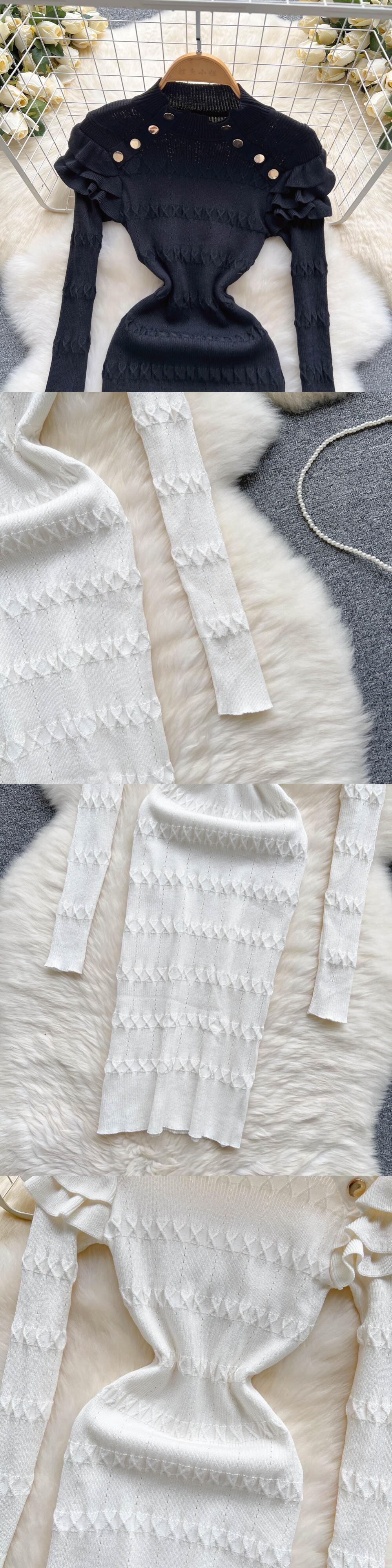 シニア フリル セーター ドレス ハーフカラー シース ミニ ロング ドレス 2022 無地ストリート ニッター ドレス ラッフル ソリッドカラー Abe87862851350