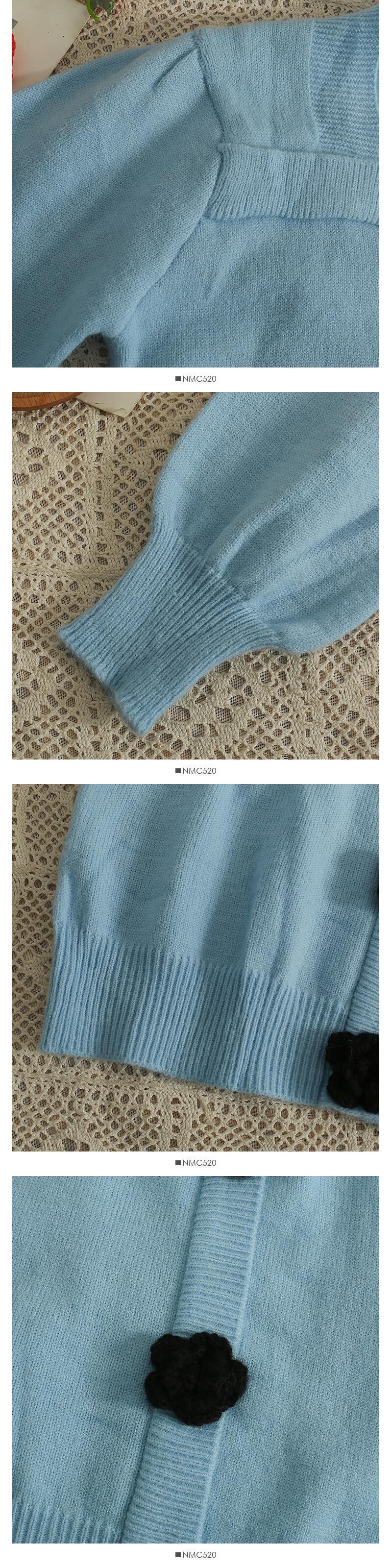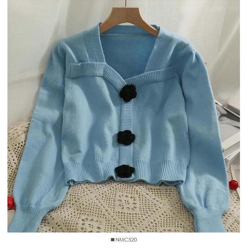 フック花ソリッドスウィート女性ニットコートパフスリーブシックな 2021 秋 OL ストリートカーディガンセーター 大人ガーリー キュート カジュアル オータム 秋物 ソリッドカラー フラワーデザイン Abe53730188830