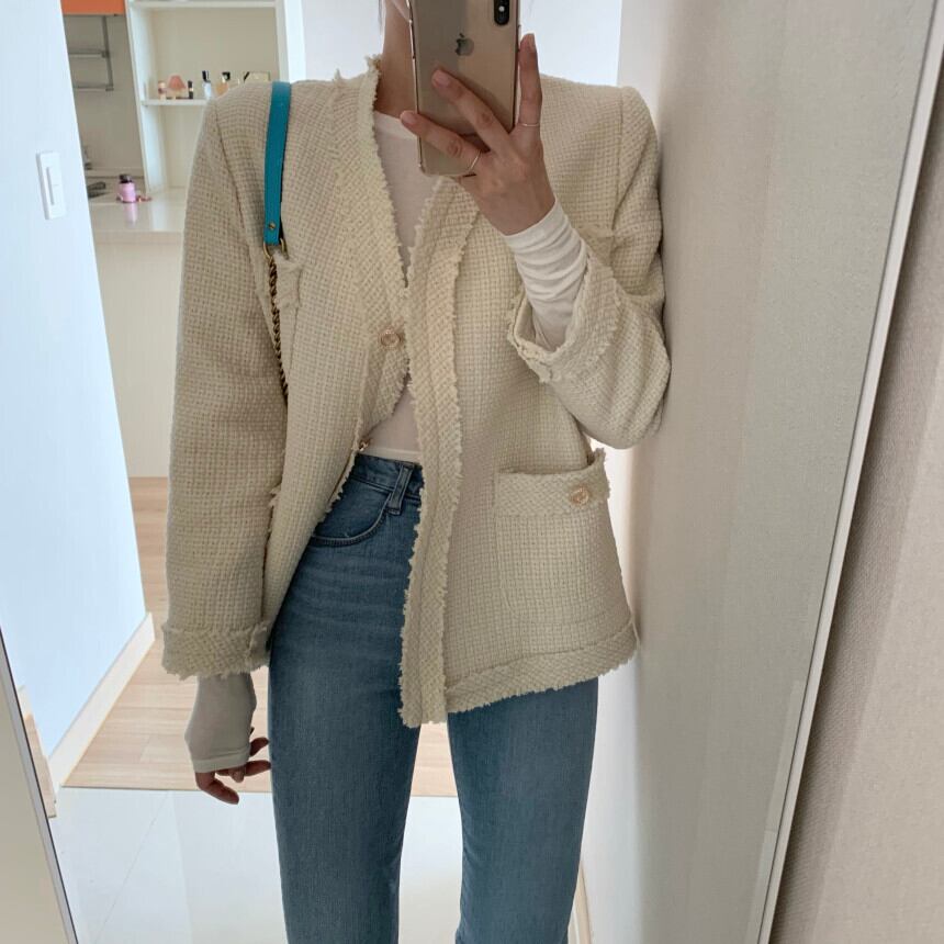 高級ウールコート女性黒 V ネックチェック柄ツイードジャケットゴールデンボタンオフィスレディ生き抜く ブラック Vネック 会社 学校 通勤や通学にも Rhc90925828003