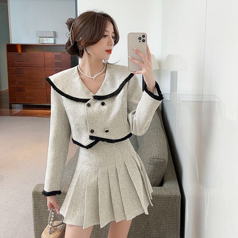 小さなフレグランス秋長袖トップスカート 2 枚セットオフィスレディシックなスーツ 2022 甘いストリートプリーツスカート ロング 大人ガーリー スウィート キュート カジュアル オータム 秋物 会社 学校 通勤や通学にも Rhc9418724266
