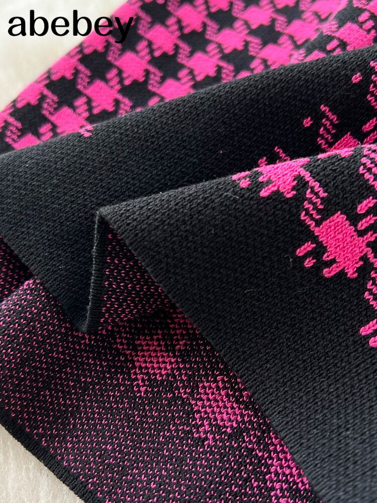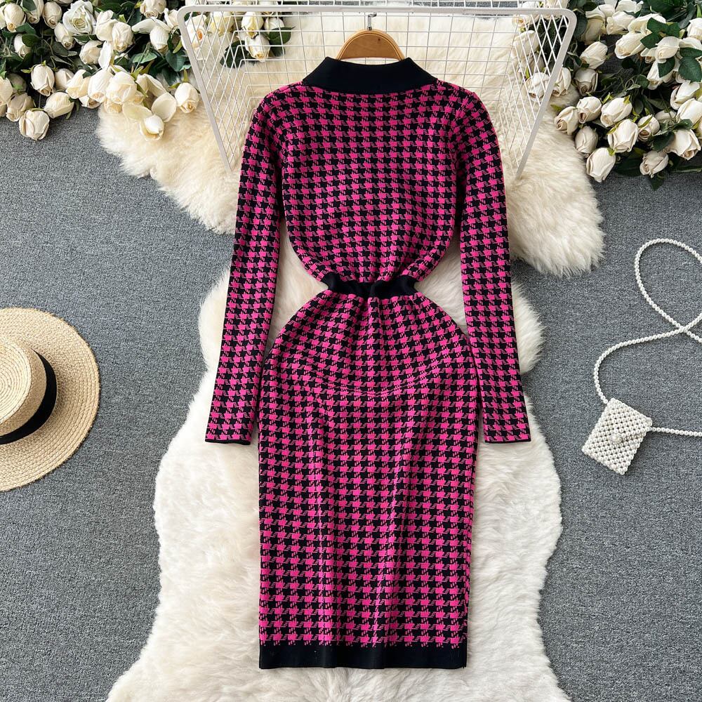 秋の女性の格子縞のニットドレスラペル長袖 A ラインボディコンドレスフレンチ Vinage セーターロングドレス オータム 秋物 Aライン Abe8190868287