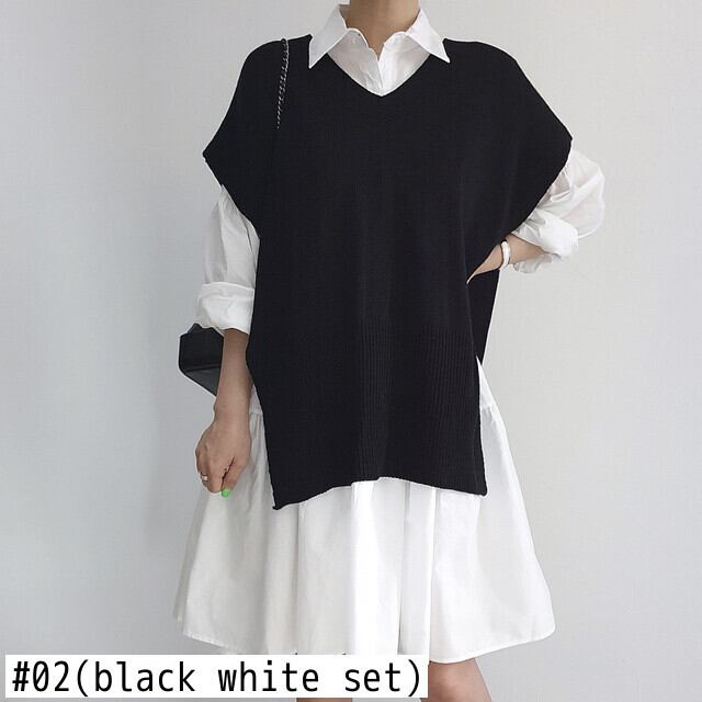ツーピース衣装女性ストリートスイングスカートパフスリーブ緩いドレスとニットベスト 2022 スーツ 2 点セット Rhc31620952018