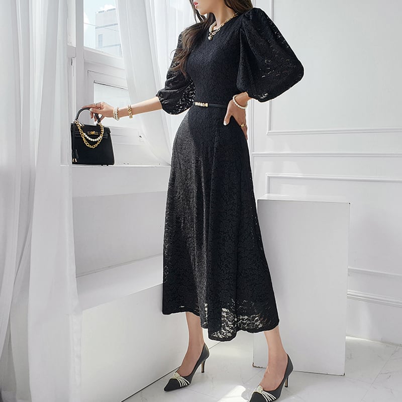 フックフラワー中空ドレス女性アプリコットレース 2022 秋のドレスボディコン 3 スリーブ女性 オータム 秋物 フラワーデザイン Rhc2832582203