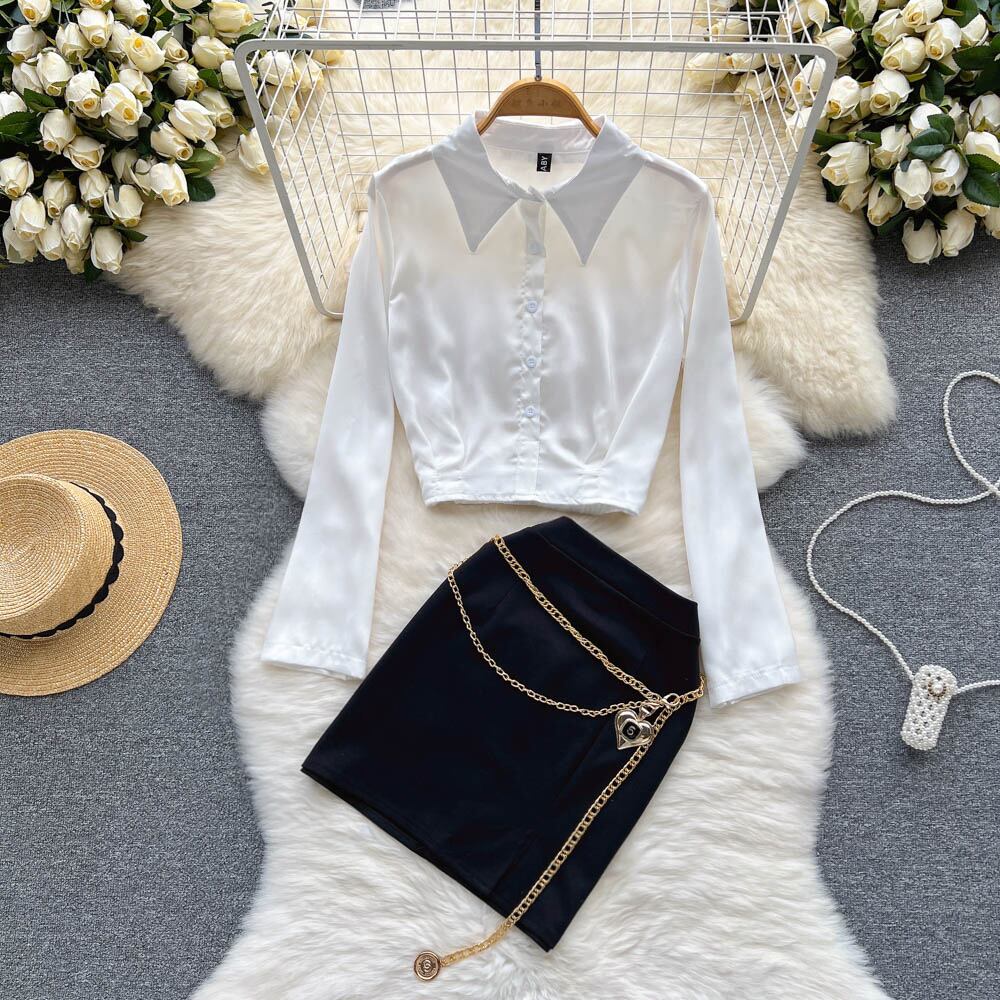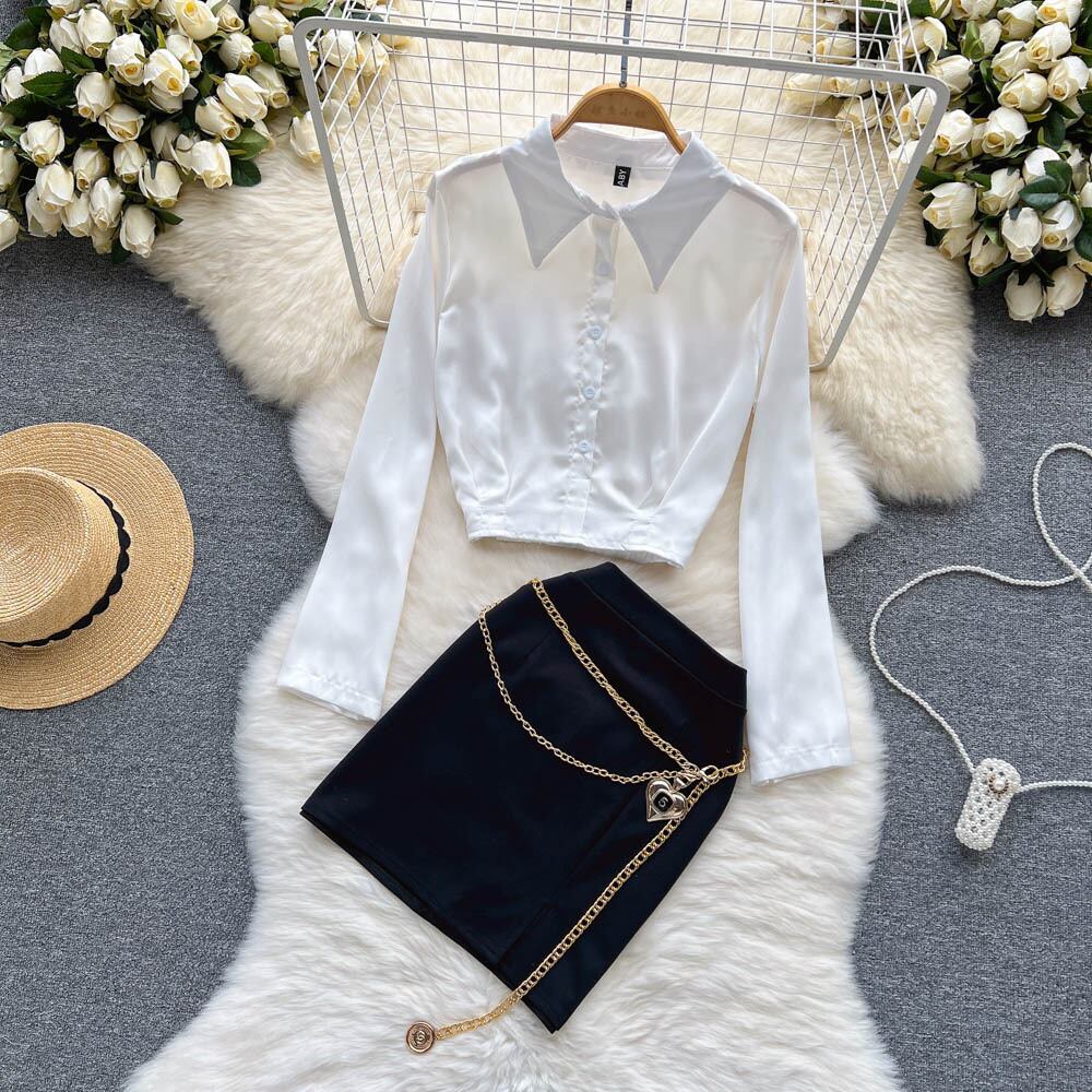 2 個衣装オフィス女性レディセクシーな白 V ネックシャツトップスブラウスバッグヒップミニスカートスリムセット ホワイト Vネック 会社 学校 通勤や通学にも Abe20899005927