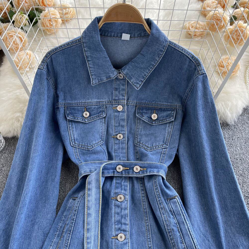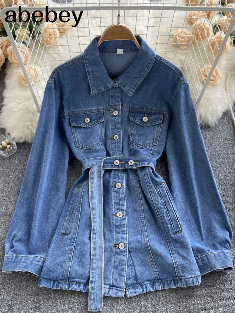 シックなデニムジャケットの女性のサッシュルーズ2022サマージーンズコートY2kブルーコート 夏物 Abe65623993916