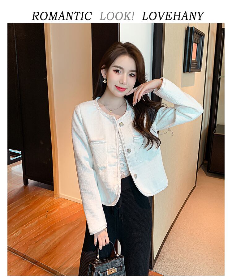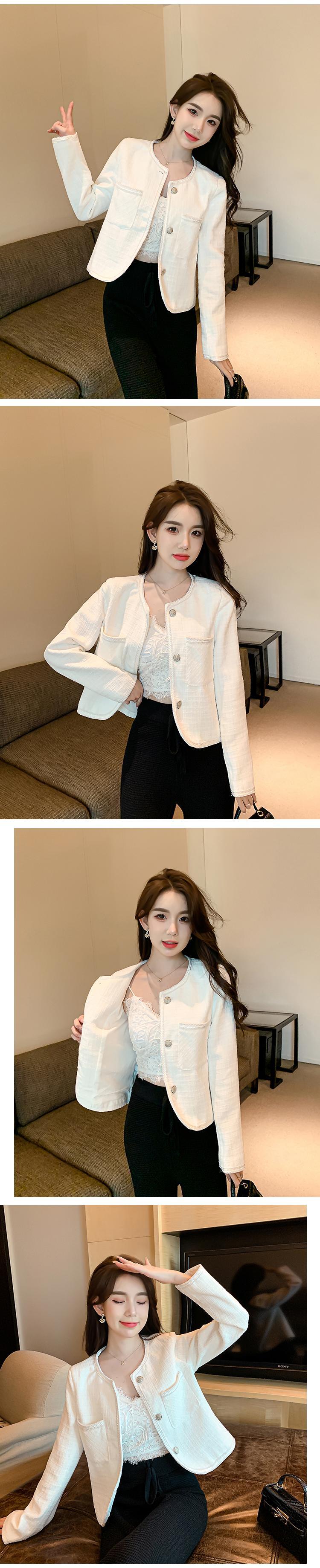 ボタン シングル ブレスト ショート ジャケット コート女性ツイード ブルー コサコ アウターウェア Traf 服 Rhc14182481462