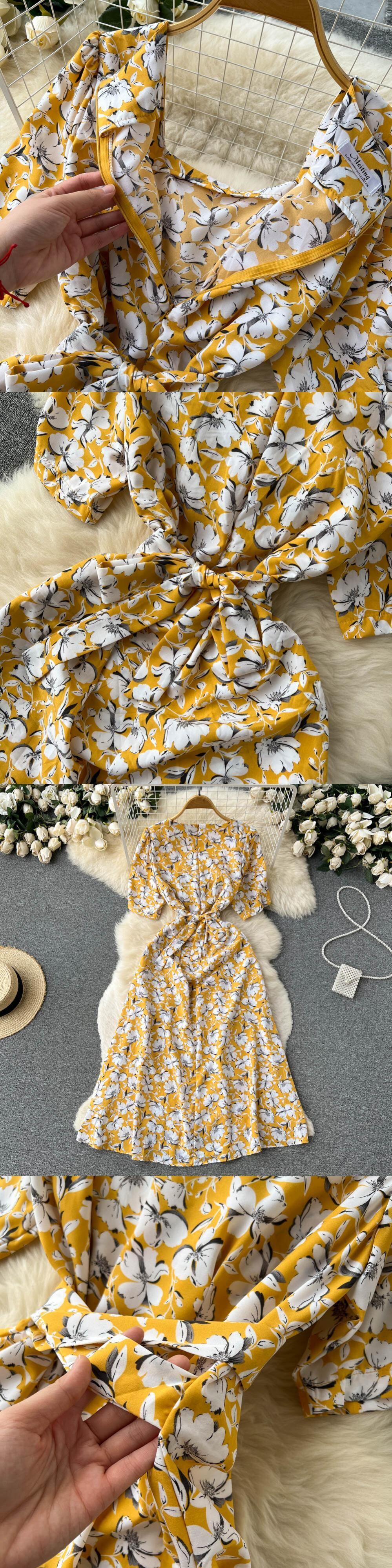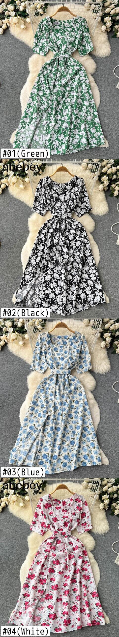 夏の女性のプリントマキシドレスセクシーなイエロー/グリーン/レッドウエスト半袖スプリット Vestidos スリムローブ 2022 ショート ハーフスリーブ サマー 夏物 Abe6760099750