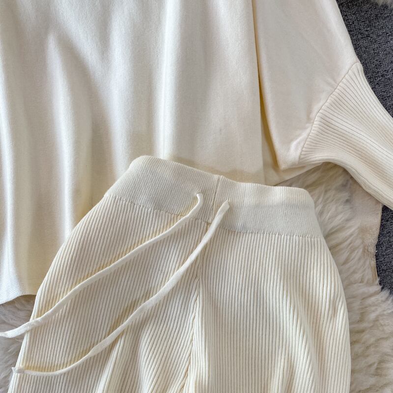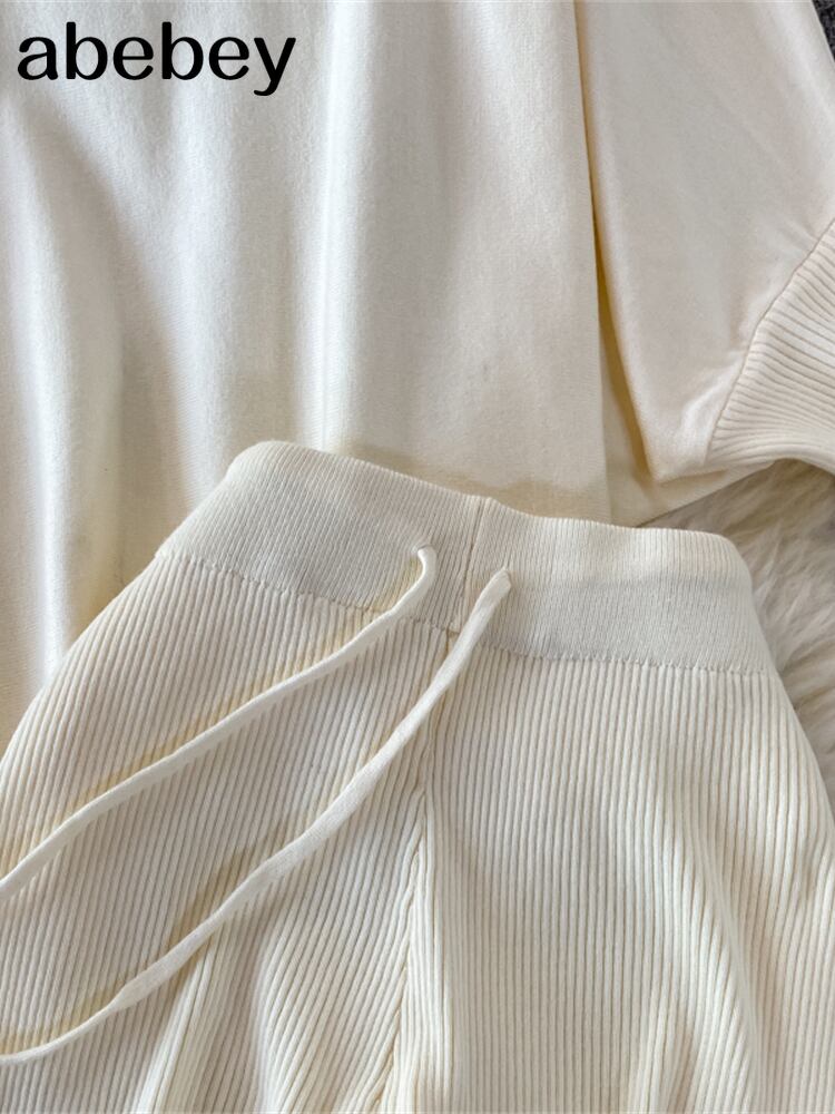女性のセーターツーピースニットセットジャカードトラックスーツシックなプルオーバー V ネック長袖トップワイドレッグパンツ 2022 ロング Vネック ワイドパンツ Abe40252796354