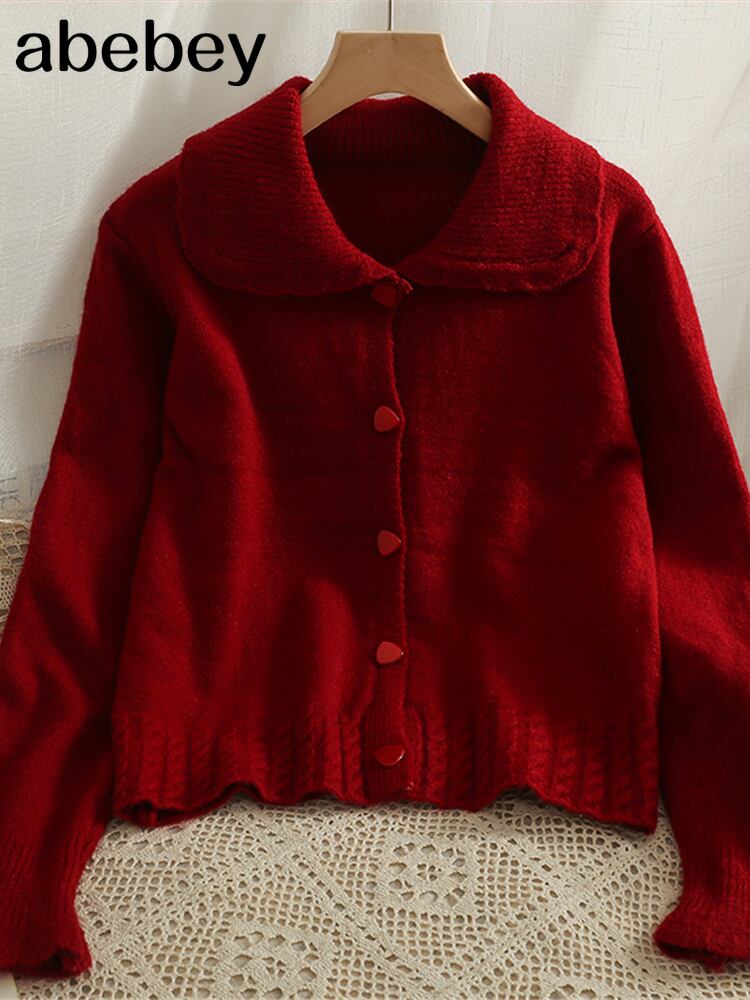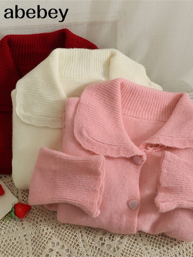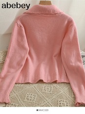 女性ターンダウン襟ニットカーディガンピンクソフトニット女性のセーターコート 2022 秋のルーズセーターカーディガントップス オータム 秋物 Abe54983032890