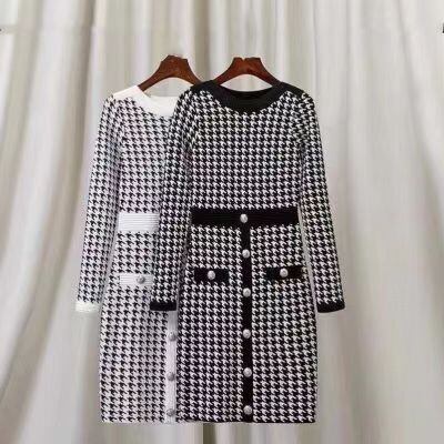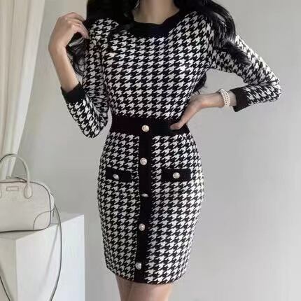 千鳥格子セータードレス女性 Fashiion セクシーな O ネック長袖 Traf ボディコンドレス服 ロング Oネック Rhc61382958113