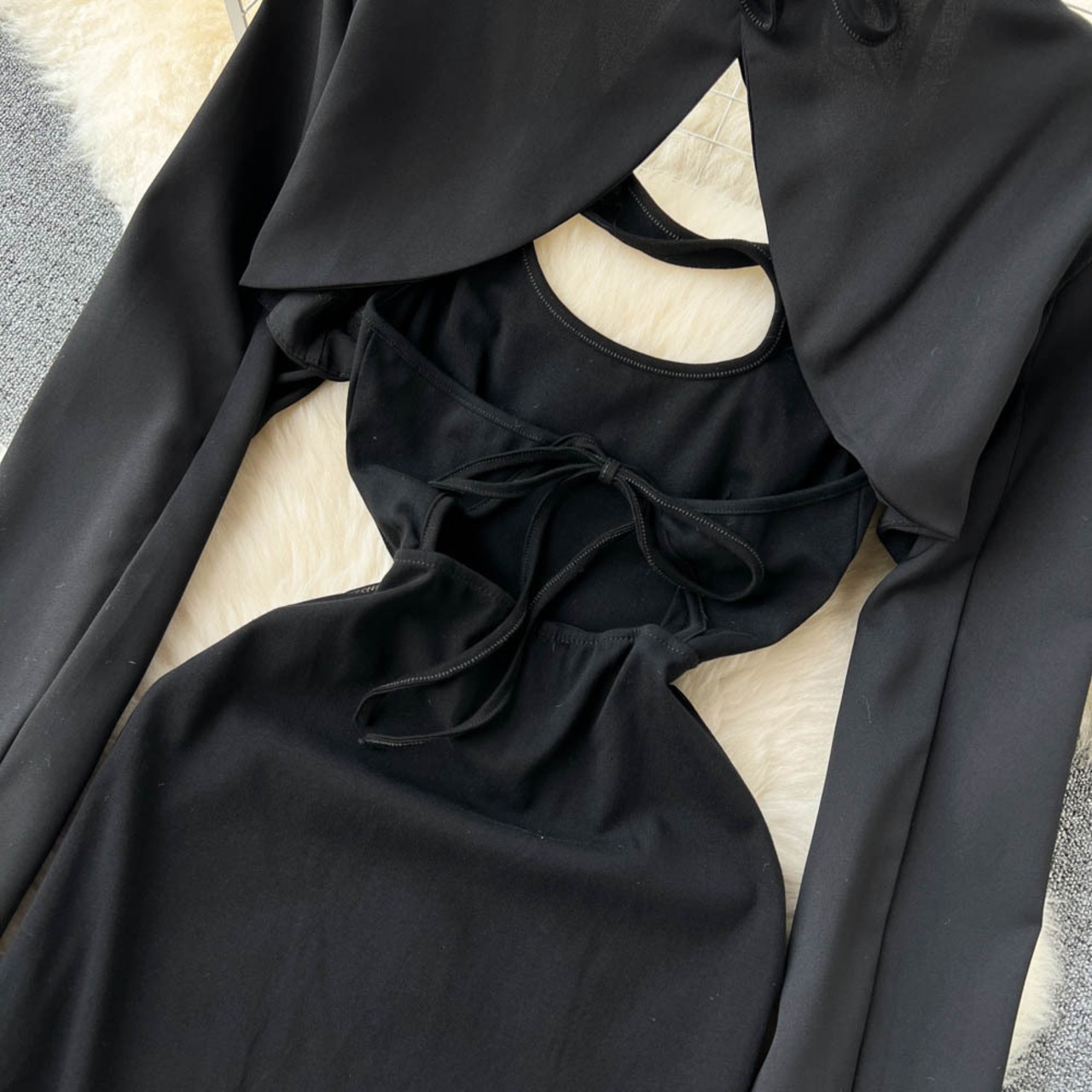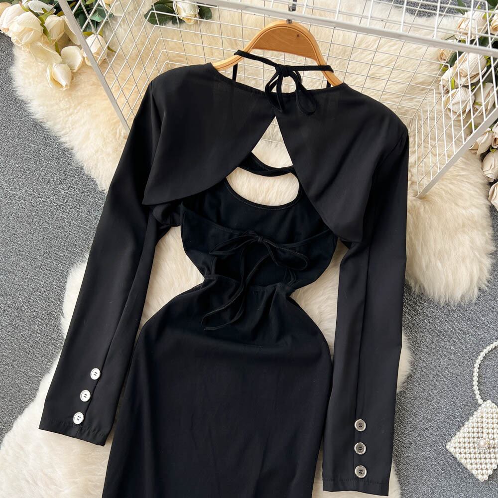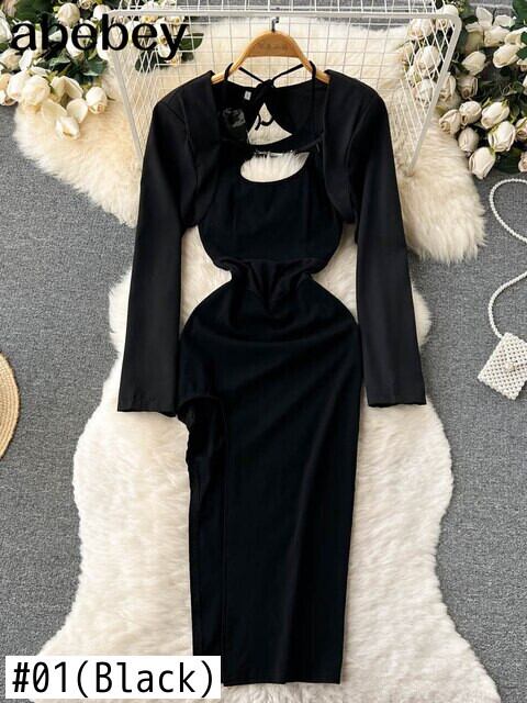 秋の女 ロング ブラック 長袖 オータム 秋物 会社 学校 通勤や通学にも Abe26380961046