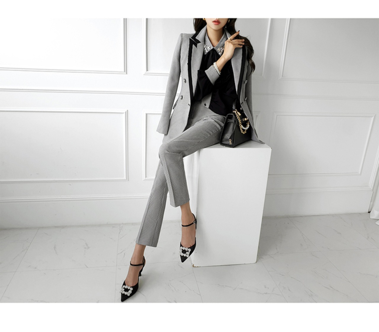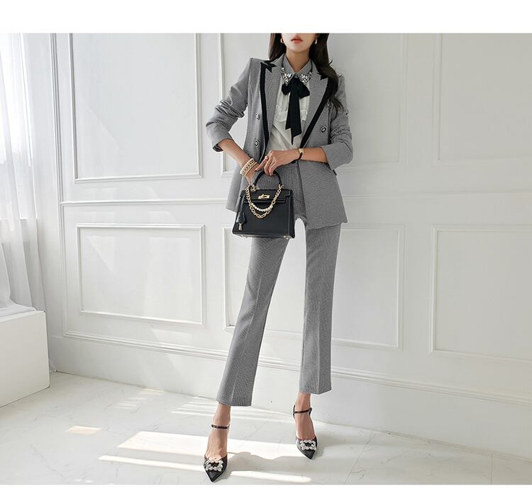 パッチワーク女性パンツスーツスリム千鳥格子ジャケット & ウエストズボンブレザーセット 2022 秋 オータム 秋物 Rhc80021359701