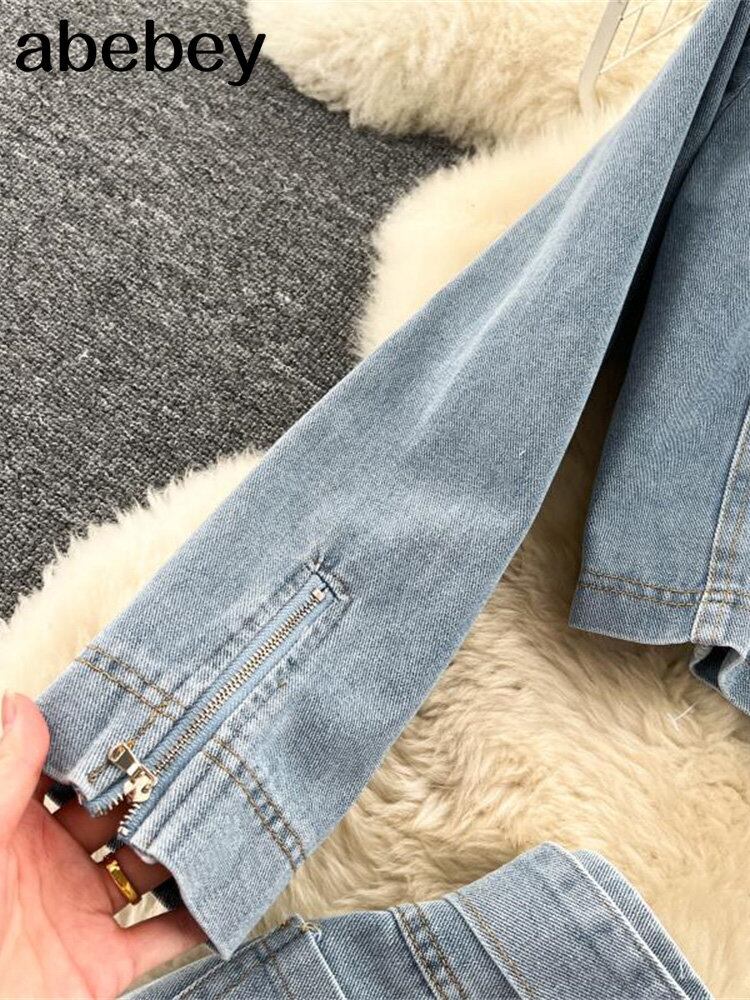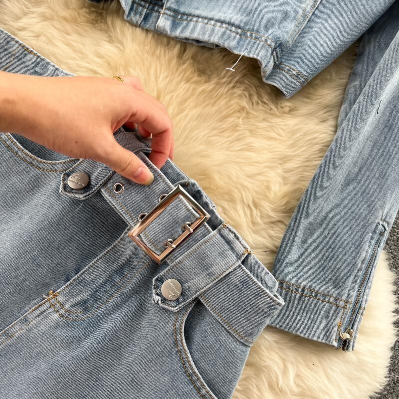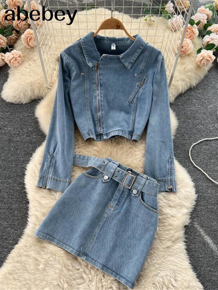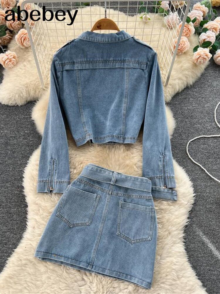 2022 秋のツーピースセット女性のセクシーなジーンズ 2 ツーピースセット長袖クロップトップスとボディコンショートデニムスカートスーツ女性 ロング オータム 秋物 Abe89512161164