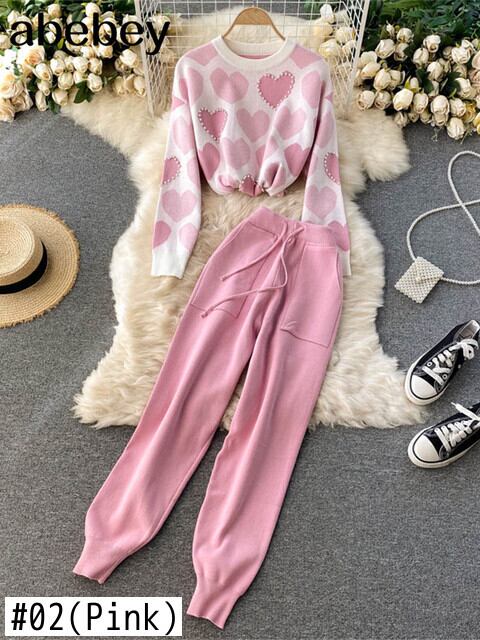 2 個セーターセット女性トラックスーツ o ネックセーター + ゆったりズボンシックなプルオーバーセーター + ニットキャロットパンツセット Oネック Abe54174838967