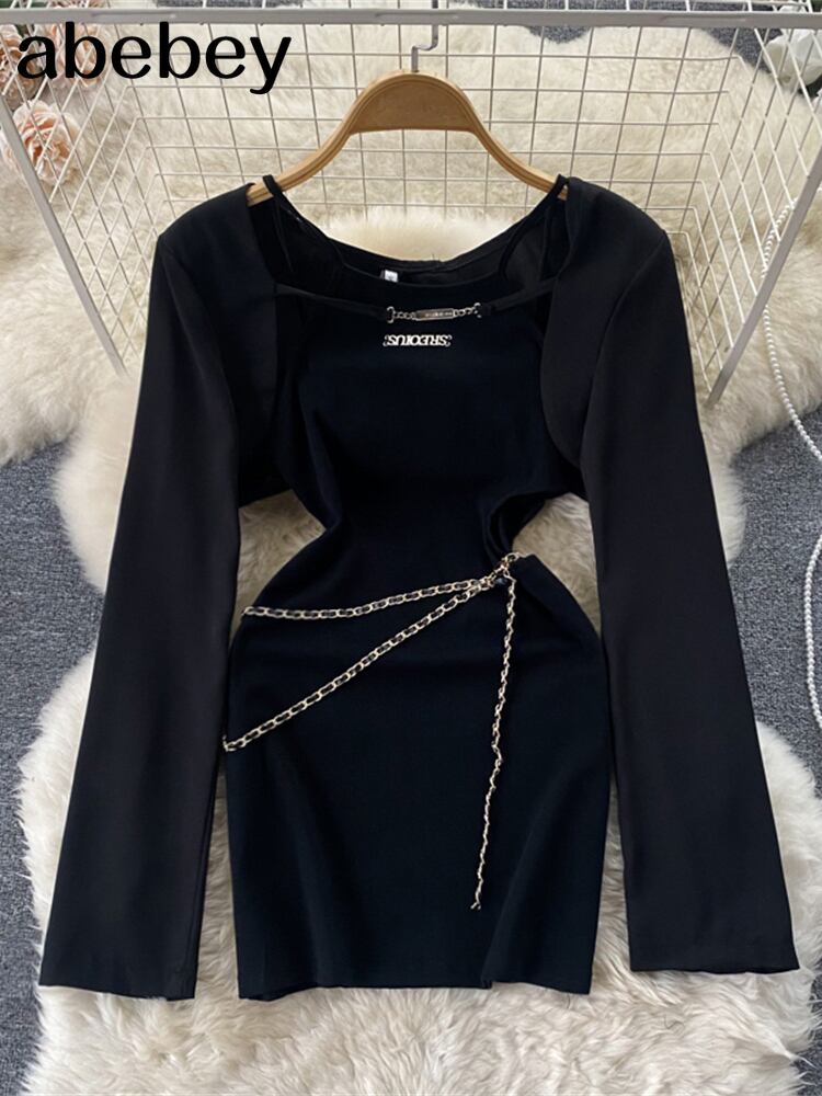 秋の女 ロング ミニ ブラック 長袖 オータム 秋物 会社 学校 通勤や通学にも Abe70899137428