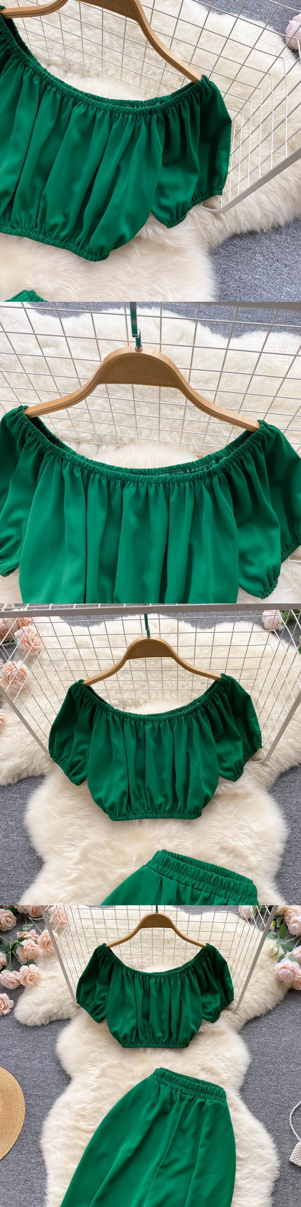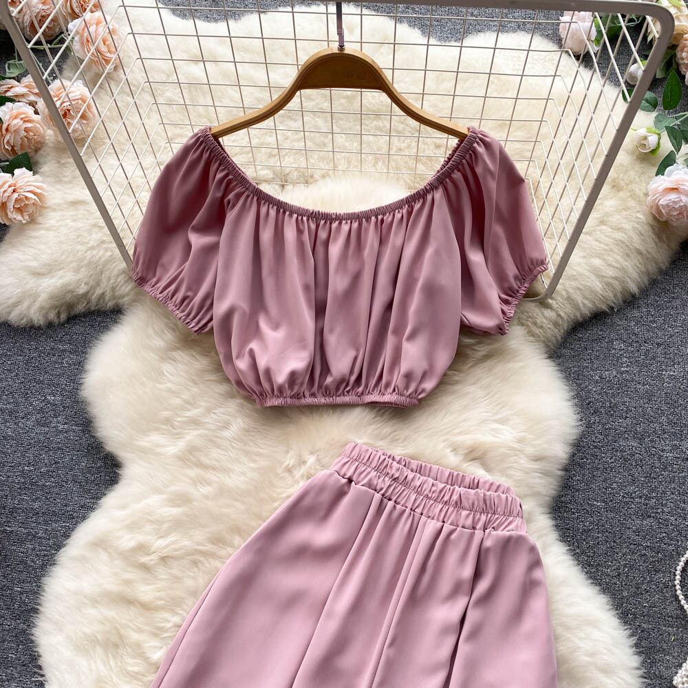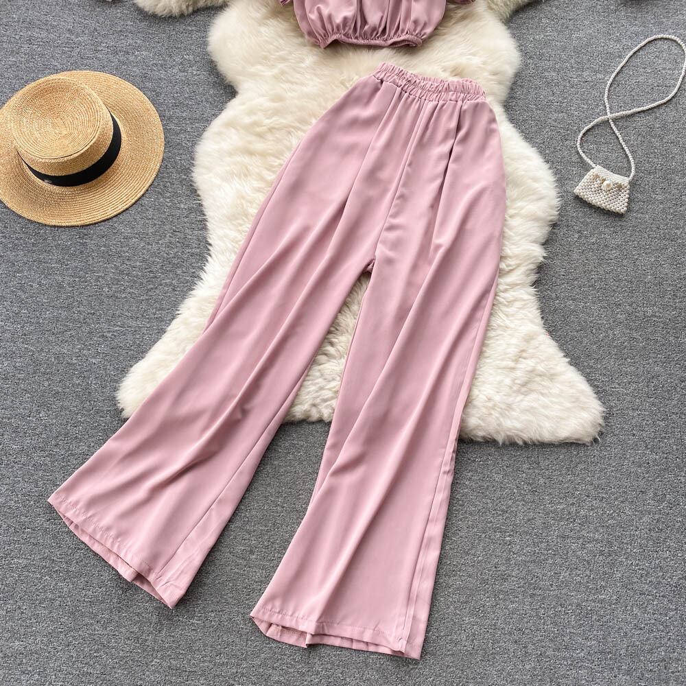 女性ソリッドセクシーなツーピースセット夏スラッシュネックスリムトップ + ワイドレッグロングパンツセットストリートツーピース Suitss 衣装 サマー 夏物 ワイドパンツ ソリッドカラー Abe59375900362