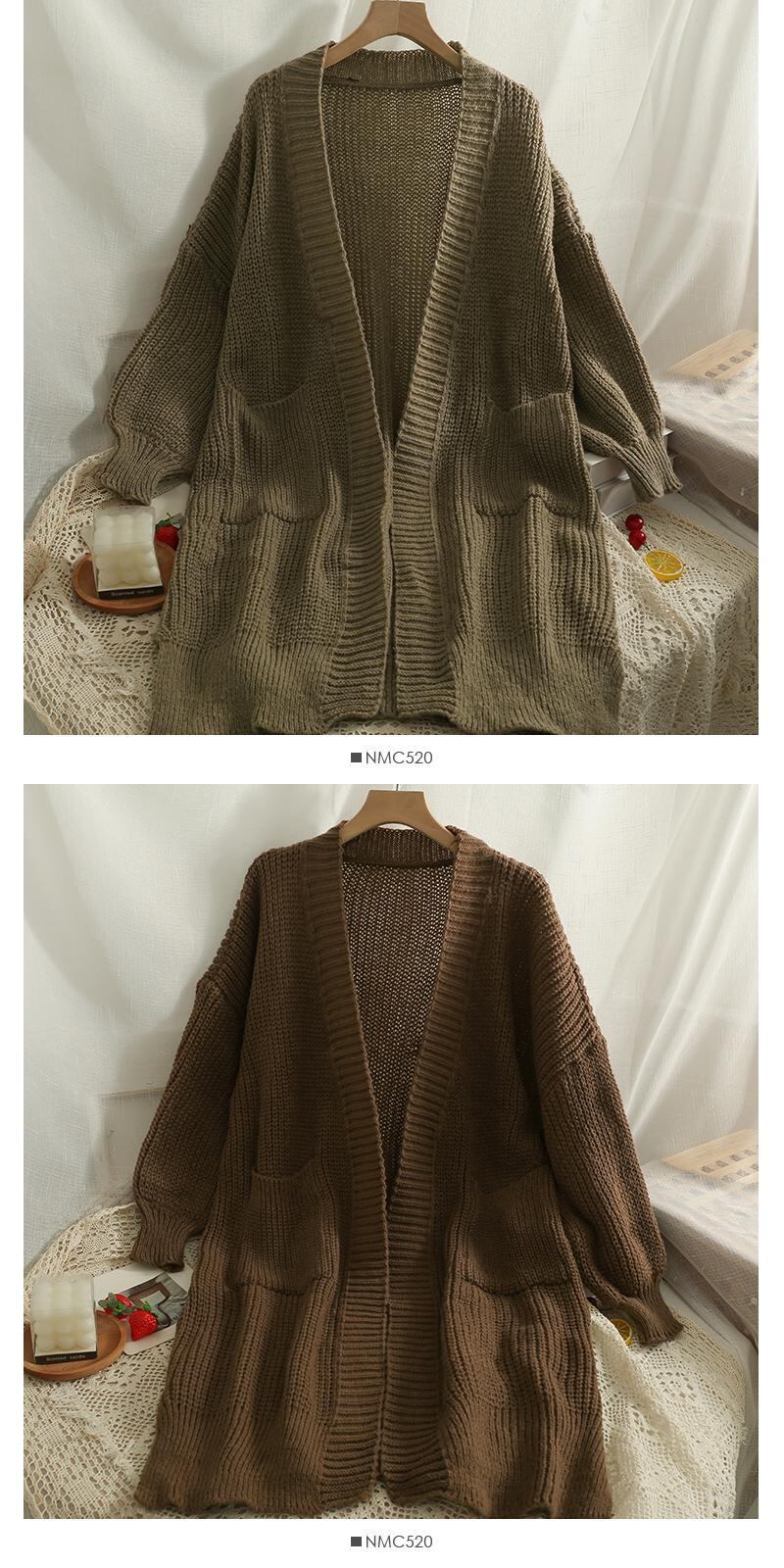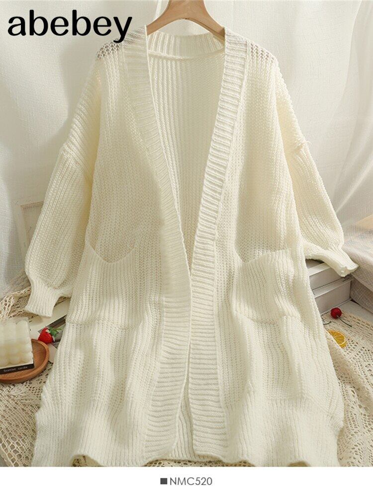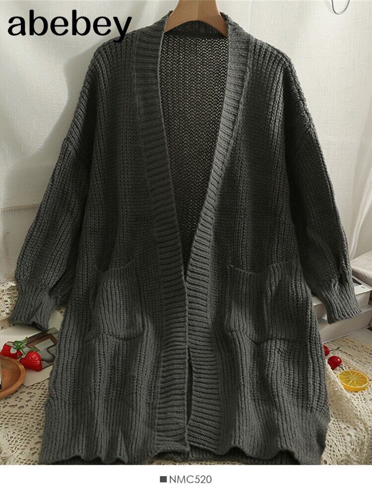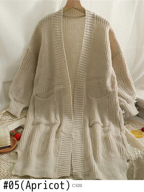 カーディガン レディース ロング ニット ルーズ セーター コート ソリッド オーバーサイズ セーター カーディガン 2022 ソリッドカラー Abe22206358461
