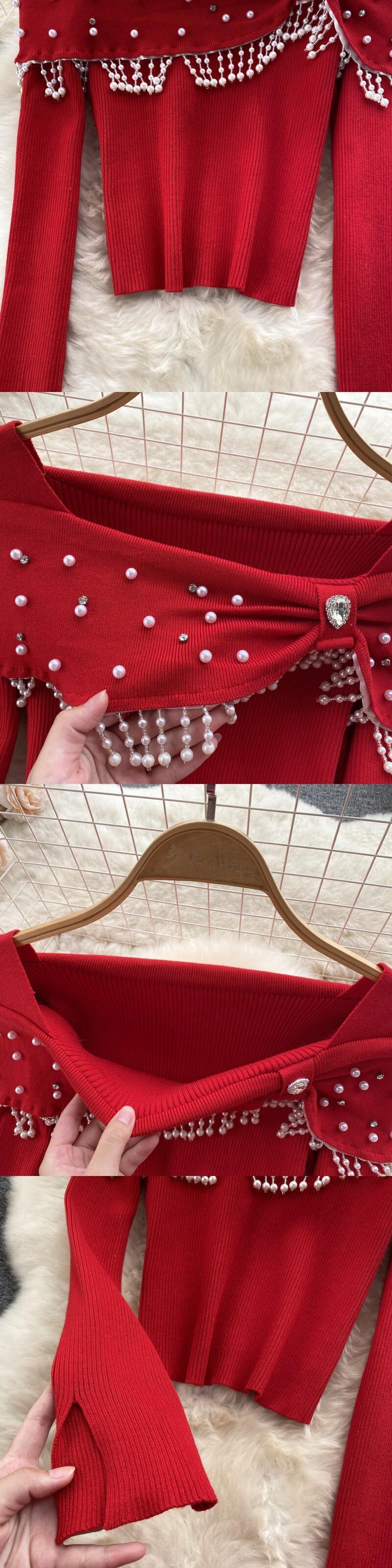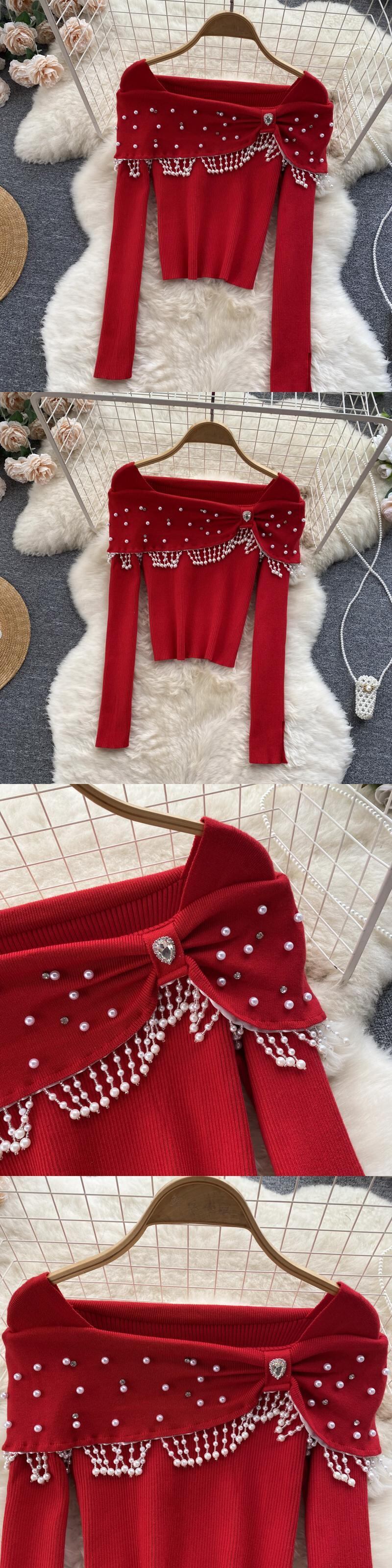 シニアブレッドニットトップロングスリーブシーススクエアネックストリートセーター女性OL無地秋プルオーバー 長袖 オータム 秋物 ソリッドカラー スクウェア Abe8255226289