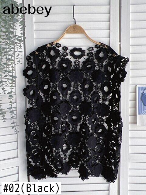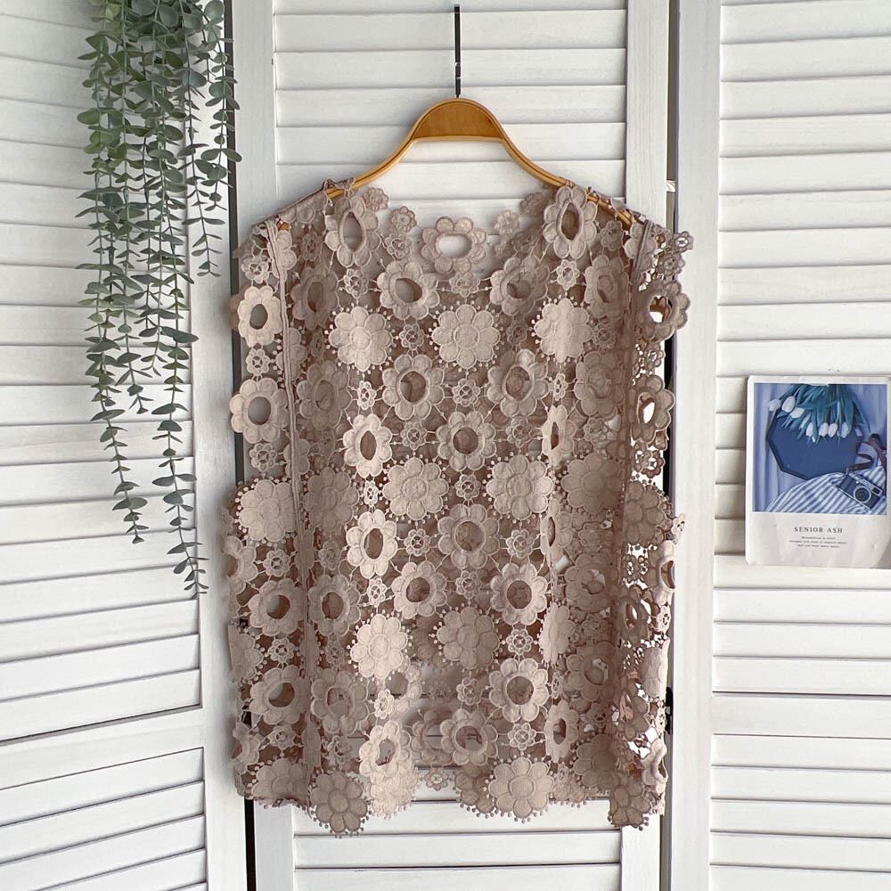 2022 レディース ベスト レース 中空アウト ノースリーブ O ネック プルオーバー トップス 因果 Sumemr ウエストベスト Oネック Abe86949264956