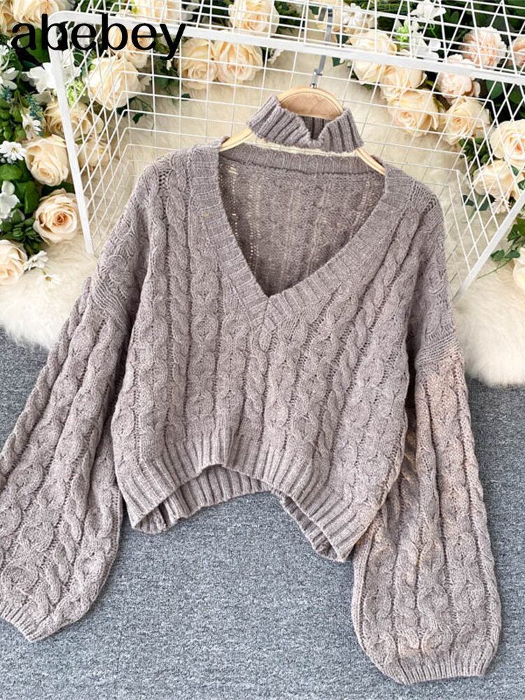 冬ツイスト プルオーバー セーター ニット長袖 V ネック クロップ セーター トップス Y2K ホルター ジャンパー プル ロング ウィンター 冬物 Vネック Abe15940089550