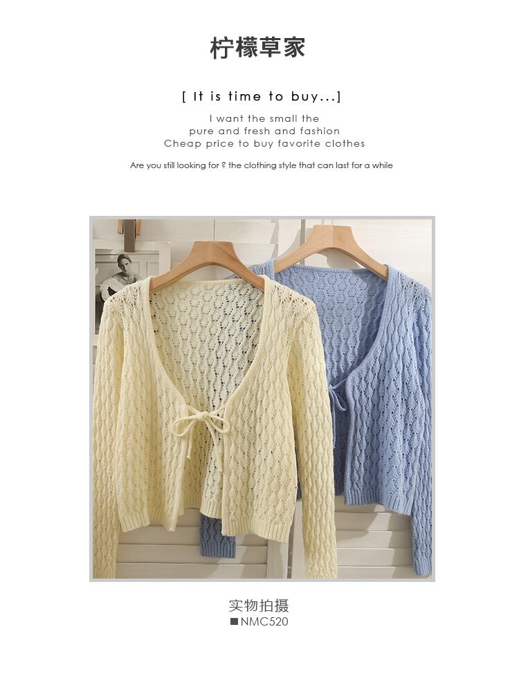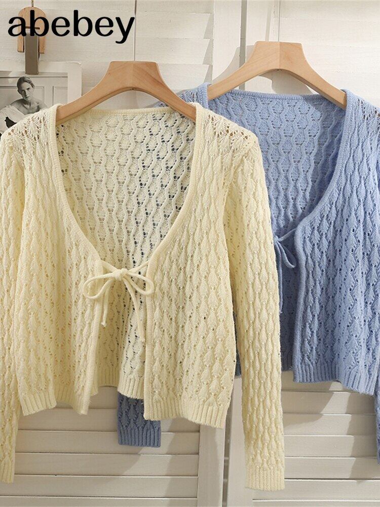女性ニット カーディガン 2022 春ベーシック V ネック ソフト コットン ニット シックな中空アウト セーター スプリング 春物 Vネック Abe91126675759