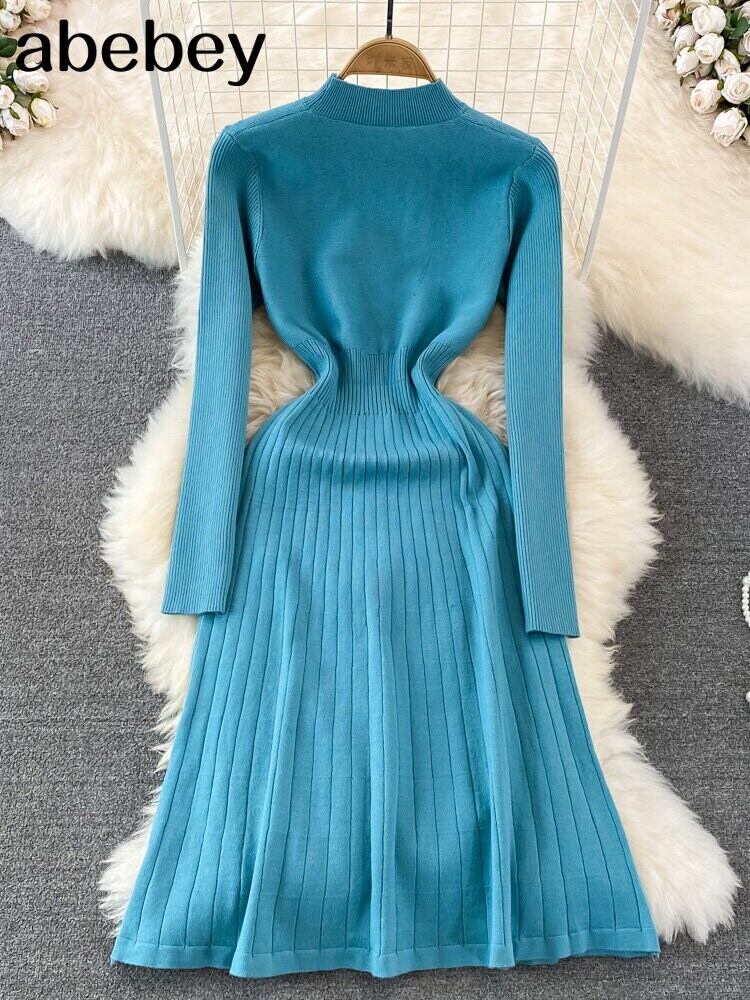 固体セクシーなニット ドレス長袖スリム A ライン パーティー ボディコン セーター ミディ ドレス ロング Aライン ソリッドカラー Abe49532639652