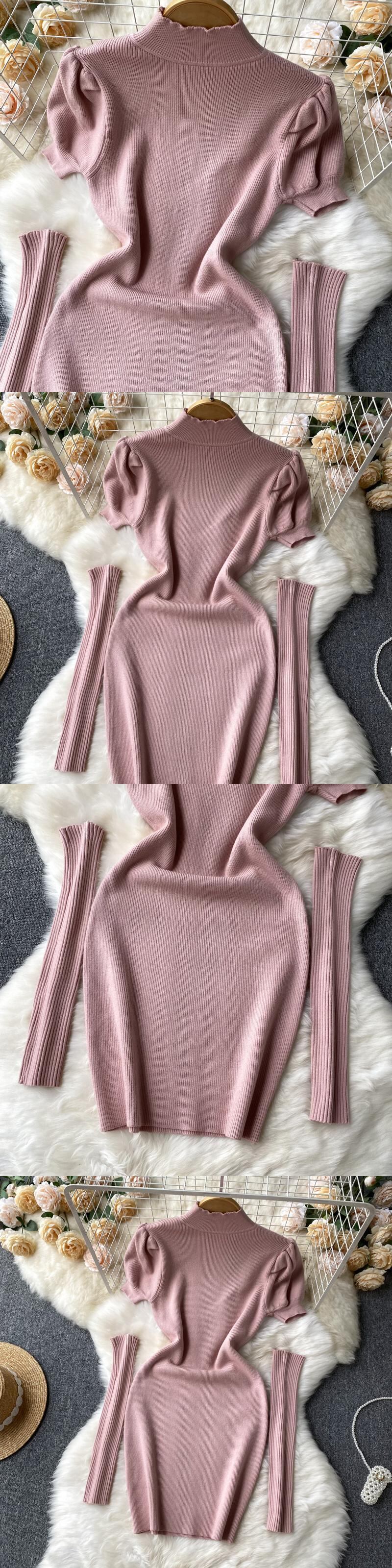 ピンク/ホワイト女性ニットドレス長袖弾性スリムペンシルドレス 2022 秋のセクシーなボディコンセータードレス ロング エラスティック 伸縮 オータム 秋物 Abe50218640936