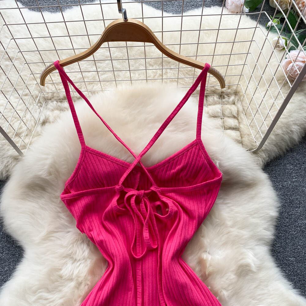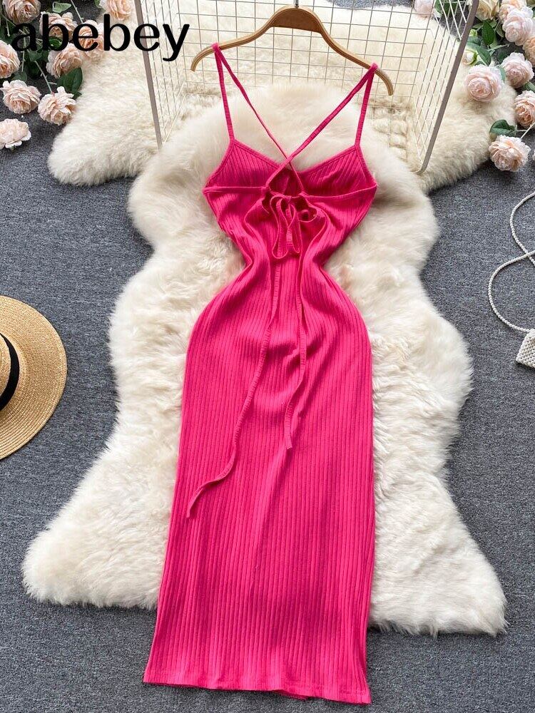 ストラップバックレスロングマキシドレスパーティークラブ休暇衣装女性のセクシーなサマードレス 2022 夏物 Abe3960063970