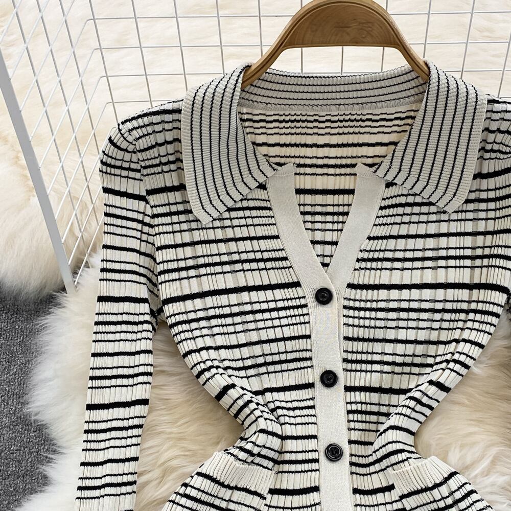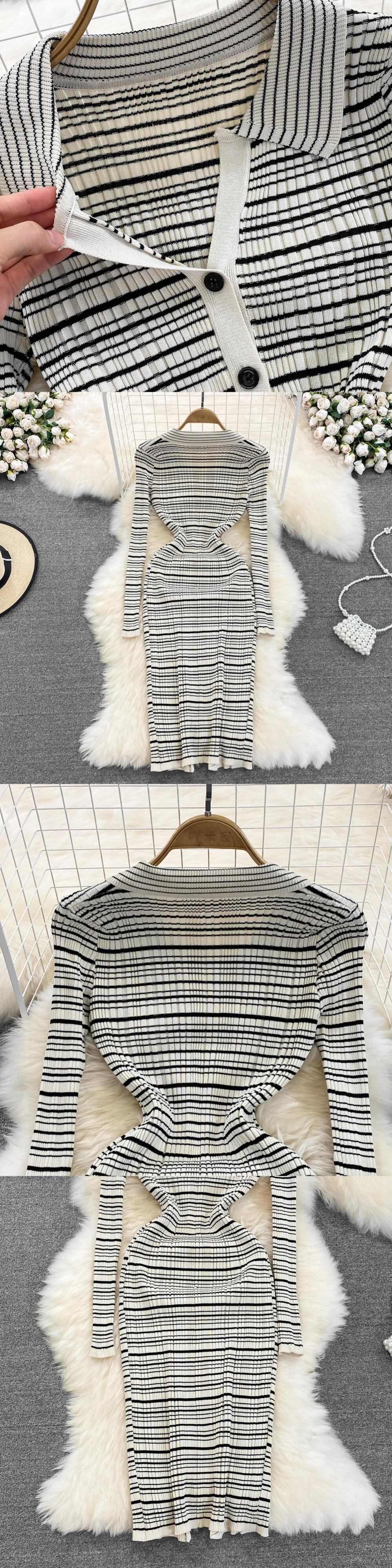 女性ニットペンシルドレス長袖ストライプ弾性スリムドレス秋冬セクシーなボディコン暖かいセータードレス ロング エラスティック 伸縮 オータム 秋物 ウィンター 冬物 Abe58087848902