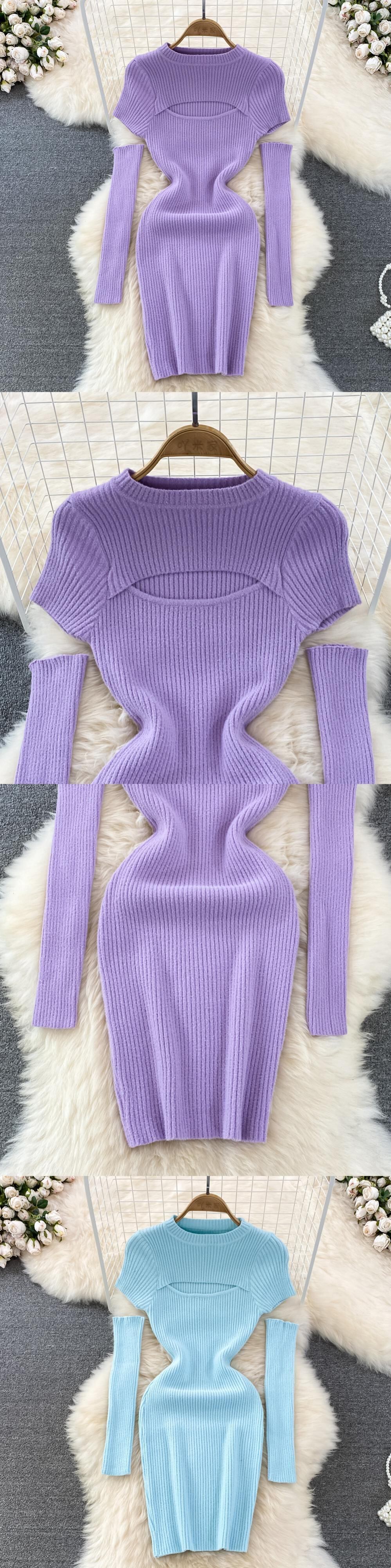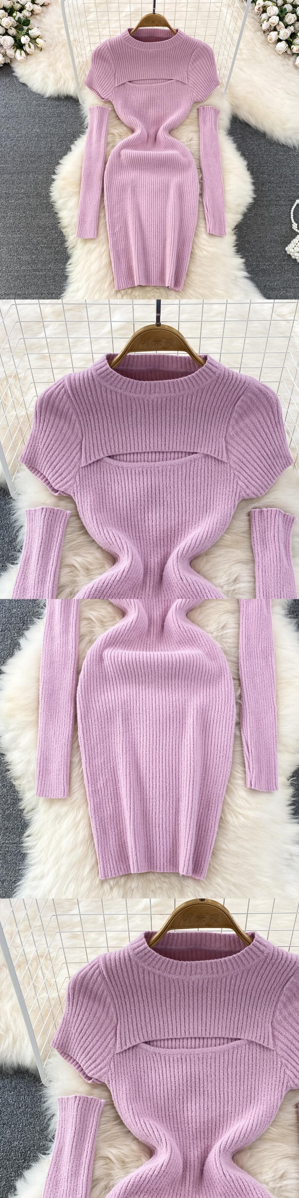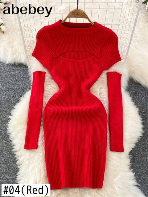 ピンクの女性ニットドレス長袖弾性スリムペンシルドレス 2022 秋のセクシーなボディコンセータードレス ロング エラスティック 伸縮 オータム 秋物 Abe50939925450